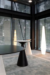 Bola to náročná úloha vyzdobiť kancelárie, v ktorých je krása Paríža rozprestretá pod každým oknom: Arc de Triomphe, Eiffelova veža, Montmartre alebo jednoducho nádherné strechy mesta...vaše oči sa kochajú pohľadom na okolie. Avšak architekt vytvoril dielo: vytvoril interiér, kde sa cítite dobre a kde si môžete vychutnať prácu. Dynamické, vibrujúce priestory pre spoločnosť, ktorá má tvár pevne obrátenú smerom k budúcnosti.
