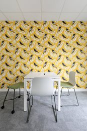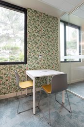 The fittings are both versatile and ergonomic with an interior design touch of 'feeling at home'. The interior settings are perfected by bold, on-trend wallpaper with graphic, exotic patterns, and by the choice of high-class, colourful furniture. The design is pleasant and welcoming, and a source of inspiration and creativity.