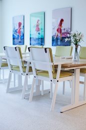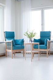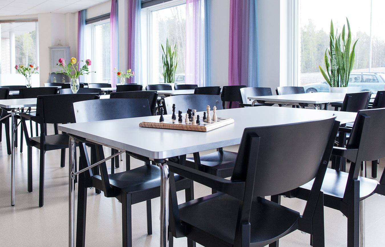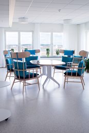 Whether it be a lounge, a waiting room or a room for socialising such as the café or canteen, a welcoming environment needs to be flexible. The tables need to be customised for wheelchair access, if this has not already been done. Chairs should be easy to move and should not make too much noise in a quiet environment. Furnishing Myntan's activity room with Knut chairs enables the room to be transformed easily from an inviting lounge into an undulating dance floor.