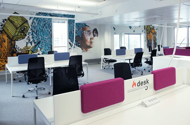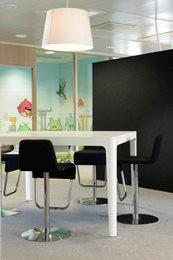 Nábytok zahrnutý do interiérového dizajnu, ktorý poskytuje Kinnarps, podporuje otvorenú komunikáciu. Hot desky sú ľahké a priestranné a stoličky Salida sú vhodné pre dlhšie pracovné stretnutia. Sedenia Monolite s vysokými chrbtovými opierkami vytvárajú pokojnejšiu a súkromnejšiu diskusnú oblasť a prinášajú farbu do otvoreného priestoru, rovnako ako tomu je v prípade farebných panelov, ktoré sú pripojené k stolovým paravánom pre zlepšenie audio prostredia. Svetlý interiér ladí s farbou loga AppCampus. Pripojenia k sieti a napájacie káble v pohovkách a stoloch umožňujú používanie zariadení kdekoľvek bez strachu z vybitia batérií uprostred stretnutí.