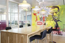 Kaviareň kampusu/chodba je vybavená drevenými stoličkami Oak, stolíkami Slitz a barovými stoličkami Turner. Kabínky sú tiež vybavené rôznymi spôsobmi, a to buď pracovnými stanicami alebo riešeniami vhodnými pre odpočinok.