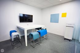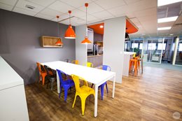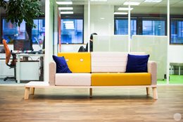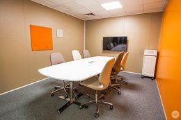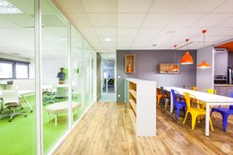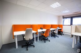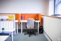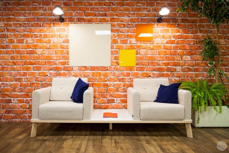 Pri výbere nábytku sa architekt rozhodol navštíviť showroom Kinnarps, aby sa personál Linksium mohol stretnúť a porozprávať s tímami v Lyone. Prebehli dôležité diskusie o ergonómii a pohode pri práci (čo je pre Linksium mimoriadne dôležité). Tento výlet tiež umožnil Linksium inšpirovať sa showroom-om a jemne vyladiť pôvodný výber povrchov a farieb...Citlivá téma, keďže majiteľ budovy vyžadoval, aby boli všetky dvere sivé, vďaka čomu hrozilo, že kancelársky priestor bude vyzerať ponuro. Našťastie šiel architekt úmyselne inou cestou a pohral sa s farbami. Vychádzajúc z oranžových a modrých farieb loga Linksium, architekt potom pracoval s doplnkovými odtieňmi a farbami. Výsledok je dynamický, teplý a osviežujúci.