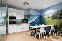 Dizajn kancelárskych priestorov Oticonu odráža globálne štandardy značky tejto spoločnosti. Popri otvorenom priestore majú zamestnanci k dispozícii veľké aj malé konferenčné miestnosti. Nachádza sa tu tiež veľká moderná kuchyňa v škandinávskom štýle.