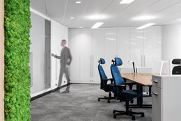"Priateľský pracovný priestor by mal odrážať čo najviac charakteristík prírodného prostredia. Preto sme v dekoráciách veľa používali živú zelenú farbu, napríklad v stenách z machu, v kombinácii s drevom a bielou farbou. Jemné materiály a farebné detaily dopĺňajú celkový dojem, zatiaľ čo symboly a vizuálne akcenty odkazujú na zvuk, hlavnú tému spoločnosti Oticon. Veľký dôraz sme kládli aj na akustické riešenia na stenách a stropoch.“
