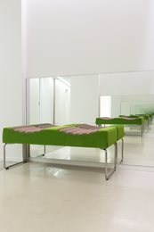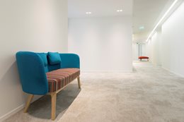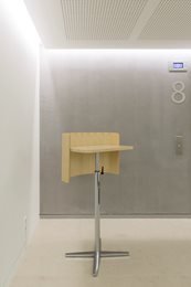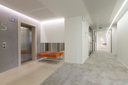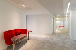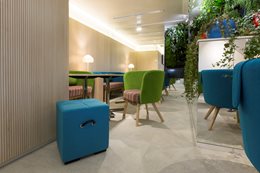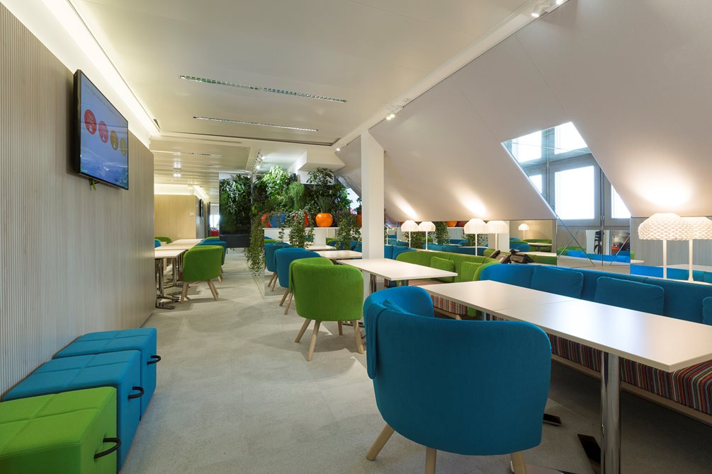 Farebná schéma - Každé poschodie má svoju vlastnú farbu - od najchladnejších na prízemí po najteplejšie na šiestom podlaží - a horné poschodie s "klubovým" priestorom poskytuje množstvo výklenkov na sedenie a obsahuje všetky farby objektu. "Táto farebná schéma je jednotiacim faktorom v celom projekte a vytvára príjemnú harmóniu v interiéri. Úmyselne som sa vyhrala s triezvymi priestormi, ktoré sa nakoniec stali rámcom pre nábytok," hovorí Annie Vitipon, architektka projektu.