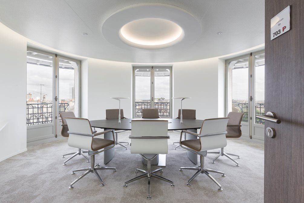 Bola to náročná úloha vyzdobiť kancelárie, v ktorých je krása Paríža rozprestretá pod každým oknom: Arc de Triomphe, Eiffelova veža, Montmartre alebo jednoducho nádherné strechy mesta...vaše oči sa kochajú pohľadom na okolie. Avšak architekt vytvoril dielo: vytvoril interiér, kde sa cítite dobre a kde si môžete vychutnať prácu. Dynamické, vibrujúce priestory pre spoločnosť, ktorá má tvár pevne obrátenú smerom k budúcnosti.