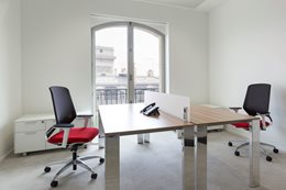Vybrať triezvu farbu pozadia (biele, béžové a tmavosivé steny; svetlé kancelárske stoly, prírodné materiály ako je drevo...) a potom pridať dotyk jasnejších farieb do čalúnení (kancelárske stoličky, pohovky, kreslá...). Vybrané farby sú farby loga: odtiene červenej a oranžovej, vyvážené paletou doplnkových farieb: modrá, tyrkysová a zelená, pričom celok má byť výstupom v látkach v solídnych farbách a pruhoch.