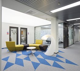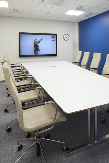 Kancelária má útulnú miestnosť na oddych v štýle kaviarne, rovnako ako zasadacie miestnosti s rôznym nábytkom v závislosti od toho, na čo sa miestnosť používa: rozhodovanie, inovácie a plánovanie.