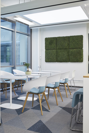 Interiérové riešenie nového kancelárskeho priestoru sú založené na modeli Kinnarps Next Office, ktorý podporuje aktívnu a agilnú pracovnú činnosť, založenú na aktivite a ponúka všestranné pracovné priestory, ktoré podporujú rôzne úlohy. Inovatívny kútik je ideálny pre skupinovú prácu, zatiaľ čo interiérové riešenie zasadacej miestnosti Tango bolo vybrané predovšetkým pre online stretnutia.