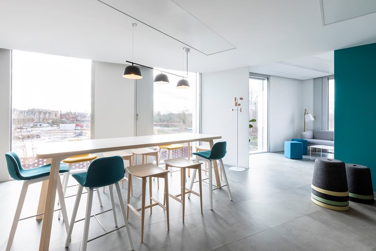 Fasáda budovy pozostáva z tehlového muriva, ktoré odráža priemyselnú históriu regiónu, skla, ktoré prepúšťa čo najviac svetla, a hliníka, ktorý zdôrazňuje arkierové okná. Budova je štruktúrovaná okolo upravenej centrálnej časti - križovatky, kde sa môžu užívatelia stretnúť. Prístupná záhrada a terasy s kolaboračnými pracovnými priestormi podporujú diskusiu a stimulujú pohodu zamestnancov.