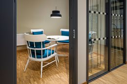 The requirement was for all old and new furniture to comply with the same high environmental criteria and carefully considered interior design concepts in order to last over time. Kinnarps helped collect, renovate, update and adapt existing products for the new building, including the Wilson bench, Trix sofa and Invito armchair.