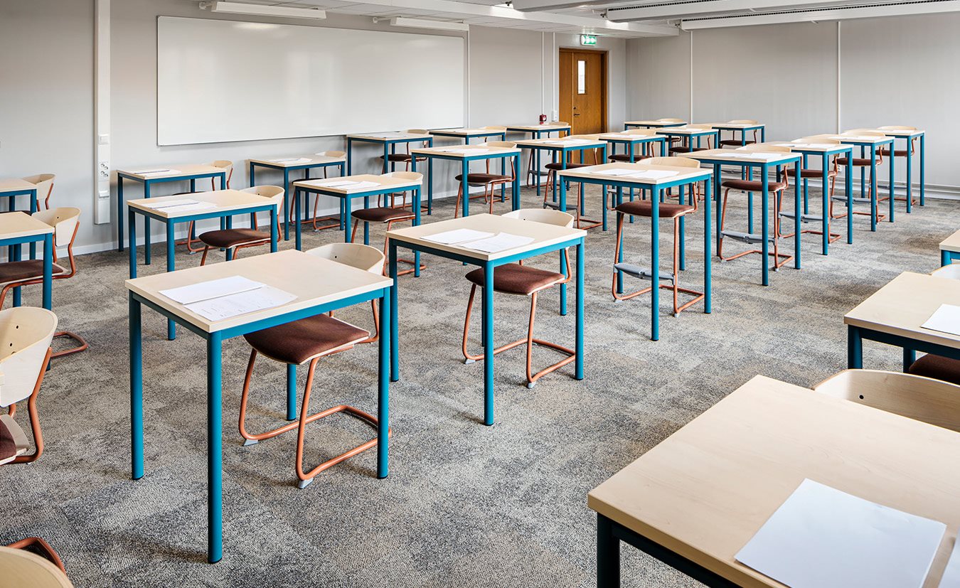 Učebne boli zariadené ergonomickou stoličkou Xpect, ktorej flexibilné operadlo umožňuje mikro pohyby a pôsobí proti statickému sedeniu. Dizajn stoličky poskytuje veľký komfort a pomáha dlhšie sa sústrediť. Xpect sa tiež dá ľahko stohovať a zavesiť na stôl, čo je ďalším znakom jej flexibility.
