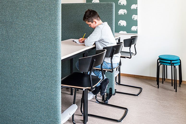 Stoly s panelmi absorbujúcimi zvuk znižujú rušivý hluk v triedach (napríklad z pier). Pohlcovače hluku namontované pod stolmi zachytávajú a absorbujú hluk z celej miestnosti a zo zdrojov, akými môžu byť napríklad vŕzgajúce stoličky.
