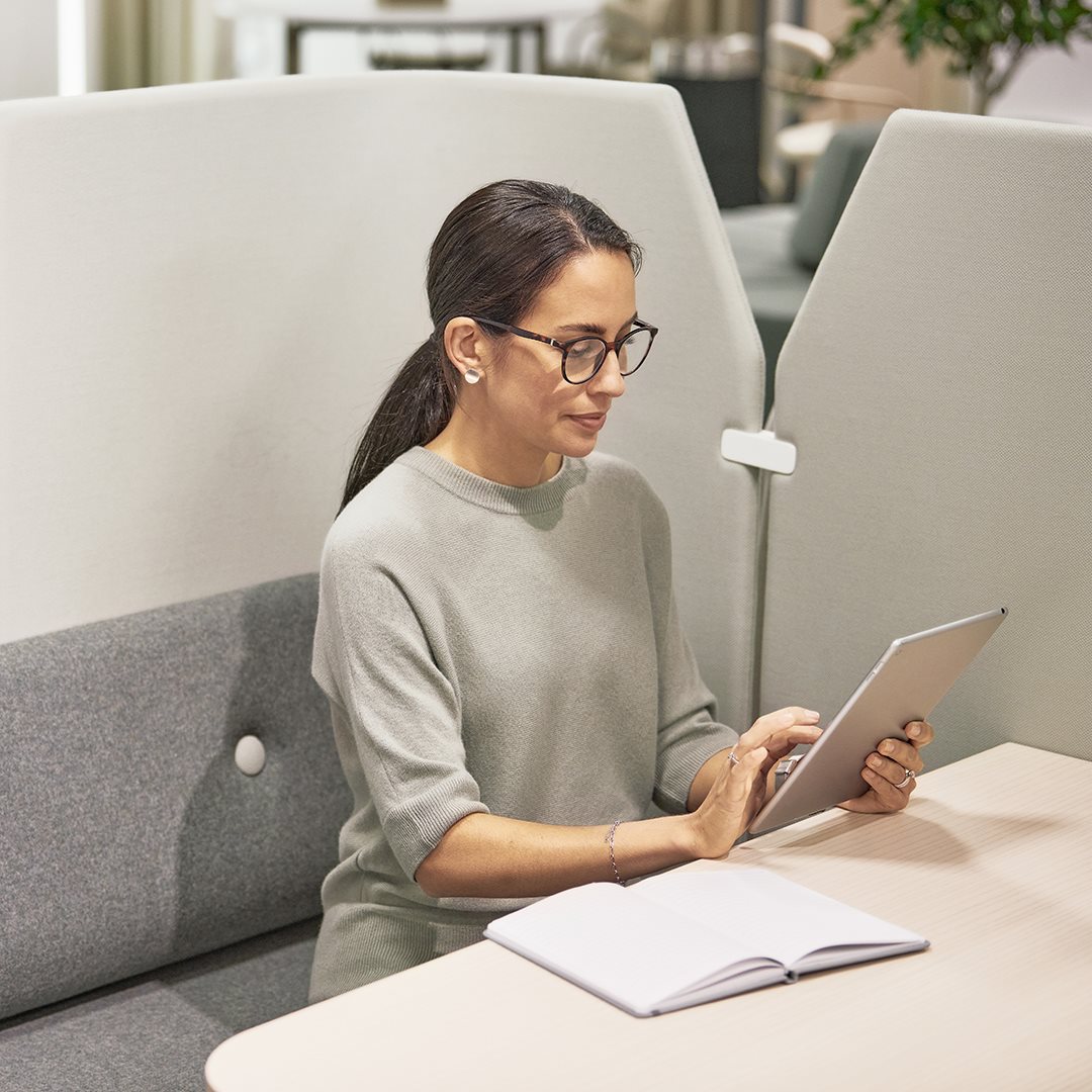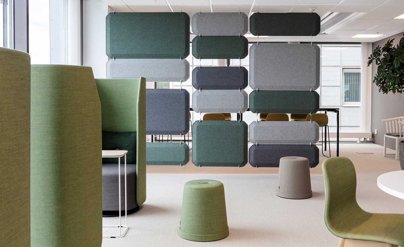 Začnite so svojou organizáciou a vaším spôsobom práce a vytvorte kanceláriu s rôznymi zónami, z ktorých každá je prispôsobená konkrétnemu typu činnosti. Vždy by mala existovať možnosť pracovať v kľude a tichu bez toho, aby ste boli rušení rozhovormi iných kolegov. Súčasne by mali existovať aj priestory, ktoré podporujú konverzáciu a spoluprácu. Majte na pamäti, že všetci máme odlišné osobnosti, a preto rôzne potreby. Načúvanie zamestnancom a ich zahrnutie do procesu je preto často kľúčovým faktorom pri vytváraní akustického prostredia, kde sú všetci šťastní a cítia sa dobre. Jednoduchým a efektívnym nástrojom je práca so zvukovo-absorbujúcimi a zvuk tlmiacimi paravánmi. Pomocou, napríklad, pripojiteľných stojacich paravánov môžete rýchlo vytvoriť samostatnú miestnosť v miestnosti, uprostred otvoreného kancelárskeho usporiadania. Takto získate flexibilnú kanceláriu, ktorá sa dá ľahko prispôsobiť rôznym potrebám a situáciám. Upevnené stenové paravány sú efektívne pri pohlcovaní hluku, čo prispieva k lepšiemu akustickému prostrediu v celej kancelárii. Prostredníctvom príslušenstva, doplnkov a výberu farieb môžete tiež prispieť k osobitému výrazu vášho pracovného prostredia. Týmto spôsobom zlepšujete nielen akustické prostredie, ale aj kancelárske prostredie ako celok.