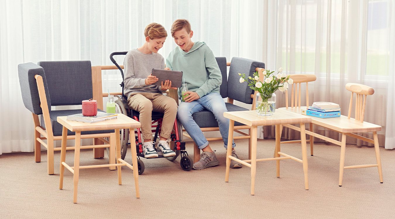 From that identified need emerged the Be a part of seating furniture, which leaves space for the wheelchair between the two seats, so it ends up at the same level. It’s also ideal for parents who want to talk about difficult things because they can sit face-to-face. The project was so successful that NC decided to partner with Ella to develop it into a finished product that can help create inclusive spaces.