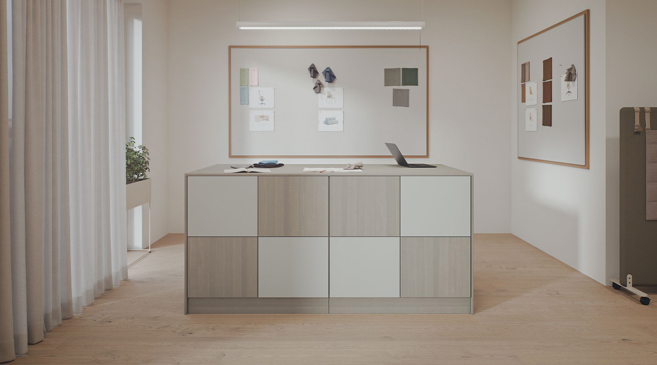 Výberom úložného riešenia, ktorý funguje napríklad aj ako projektový priestor, priestor na sedenie alebo šatník, môžete pracovné prostredie zefektívniť.