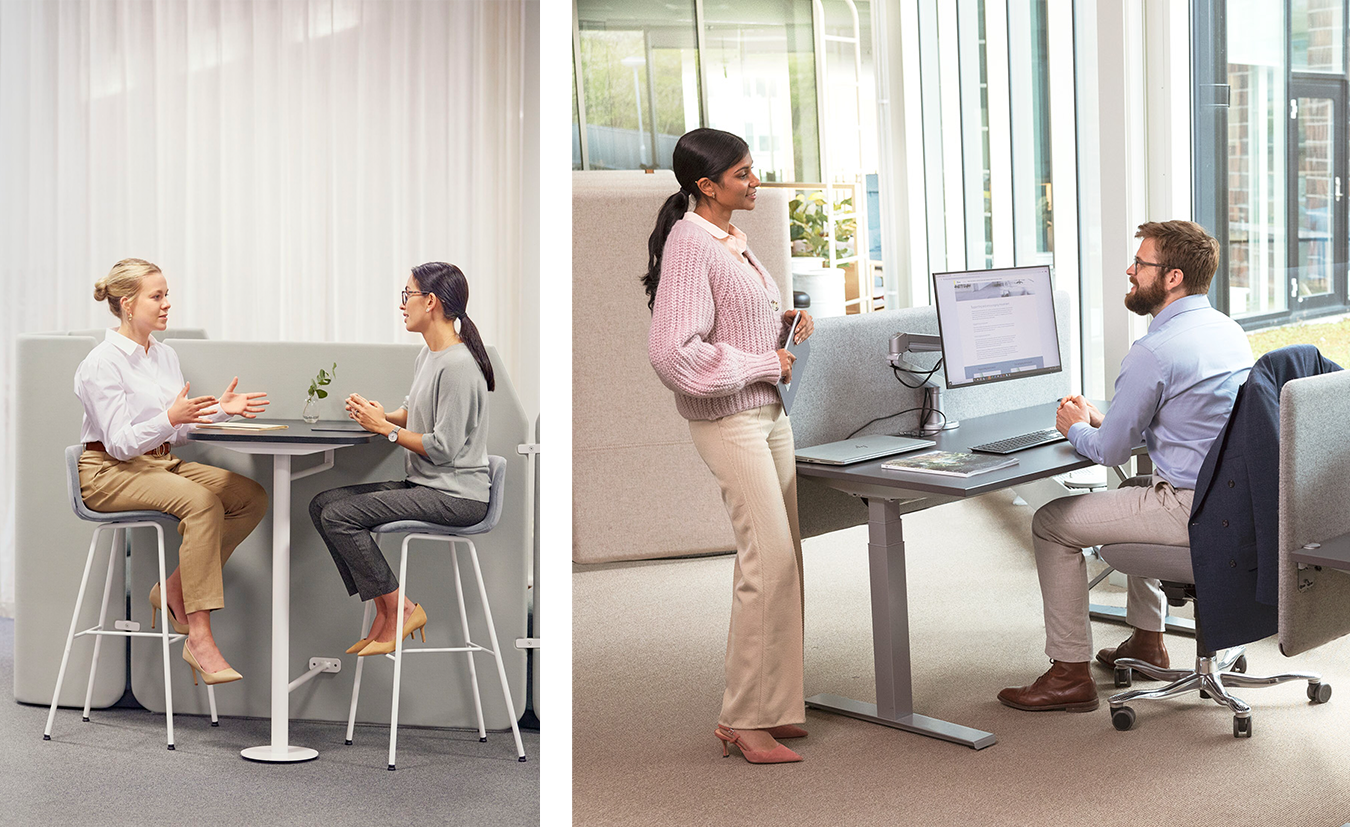 Spontánne stretnutia sa na pracoviskách uskutočňujú každý deň. Kolegovia sa stretávajú na chodbách, pri automate na kávu alebo na svojich pracovných miestach, aby sa porozprávali či brainstormovali. Tieto typy spontánnych stretnutí nie sú dôležité len na utuženie vzťahov medzi zamestnancami, ale tiež zlepšujú spoluprácu a riešenie problémov. Poskytnite zamestnancom možnosť zastaviť sa a porozprávať v otvorených, pohodlných a príjemných miestach na sedenie alebo státie. Zamyslite sa nad tým, ako chce vaša organizácia povzbudiť ľudí, aby sa stretávali, a uistite sa, že sa to odrazí v usporiadaní vašej kancelárie.