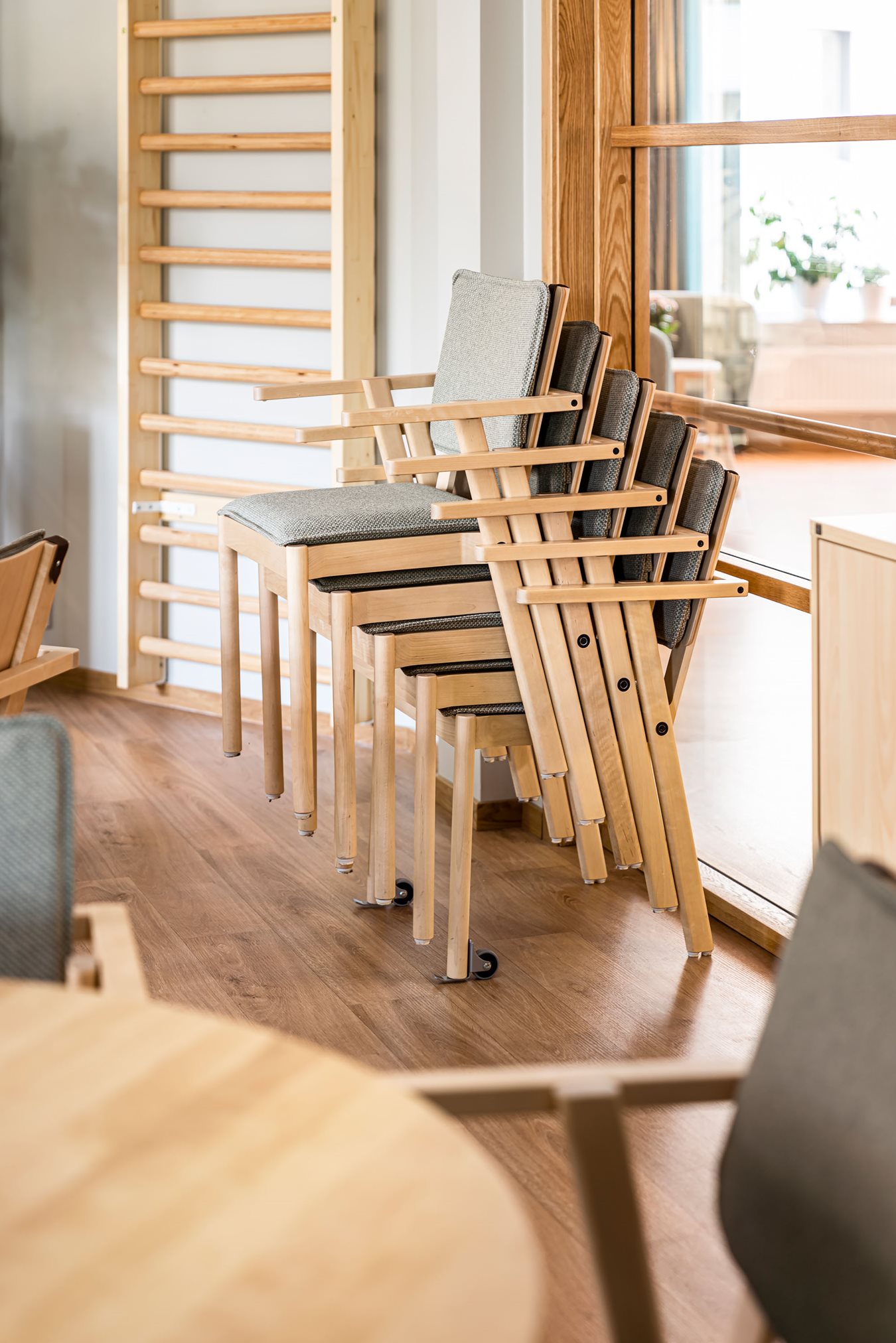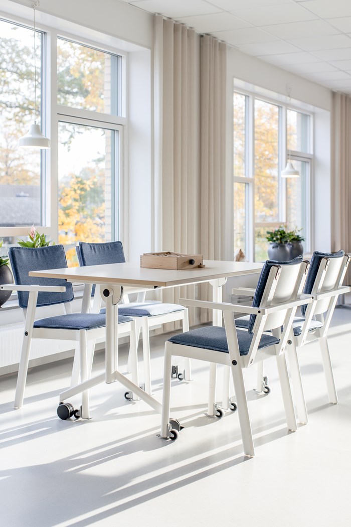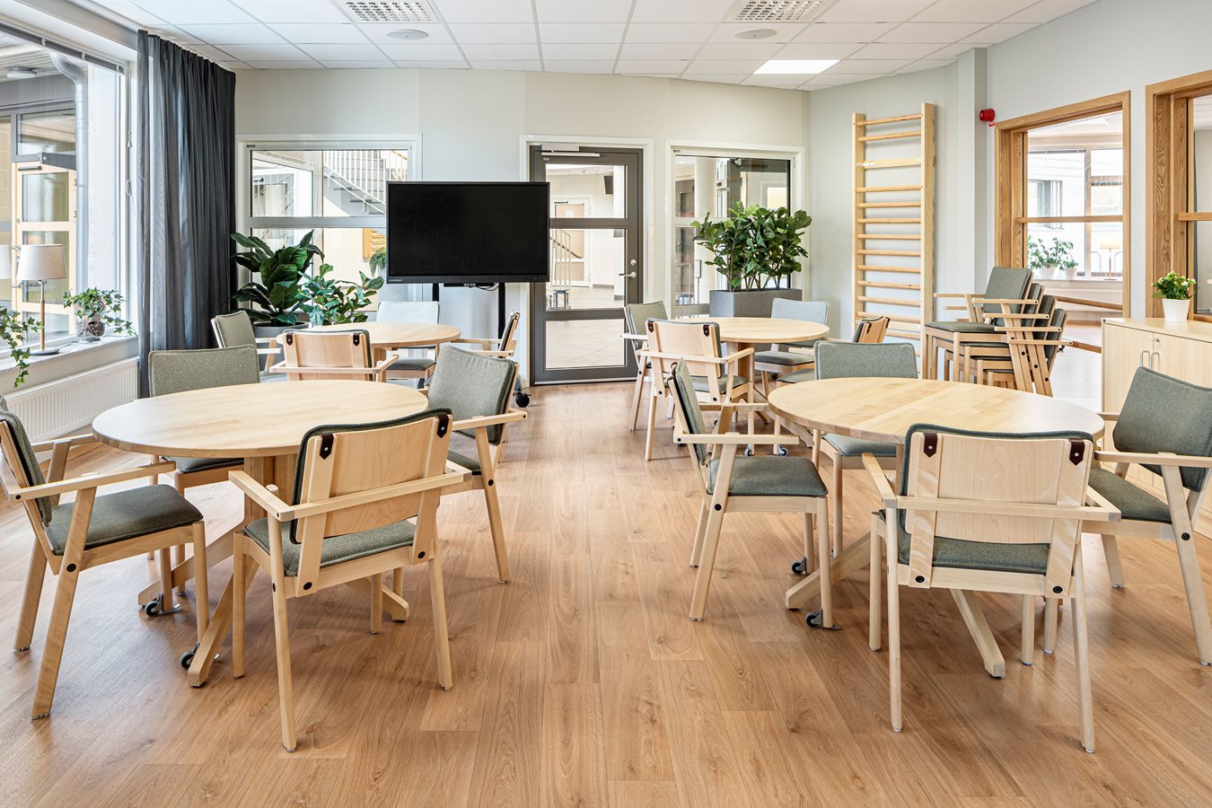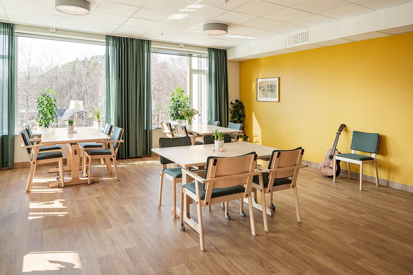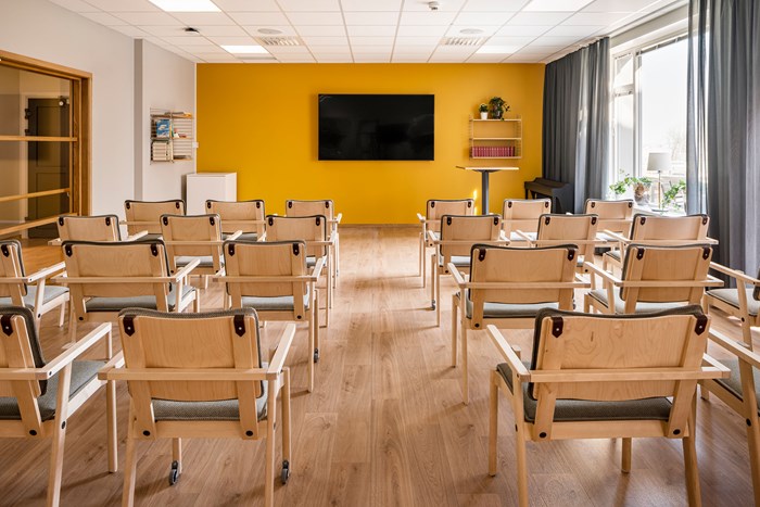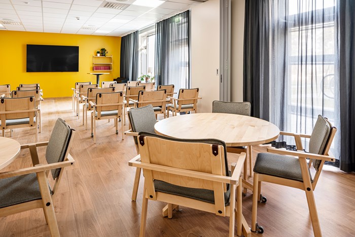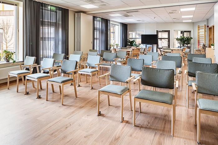 The activity room is a space that should be available for all kinds of purposes, from handicrafts to morning gymnastics and dancing. It’s therefore important that the interior design is flexible, so that it’s easy to put away or rearrange the furniture. If necessary, the activity room can be used by other parts of municipal or regional operations, as a meeting place or conference facility.