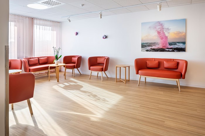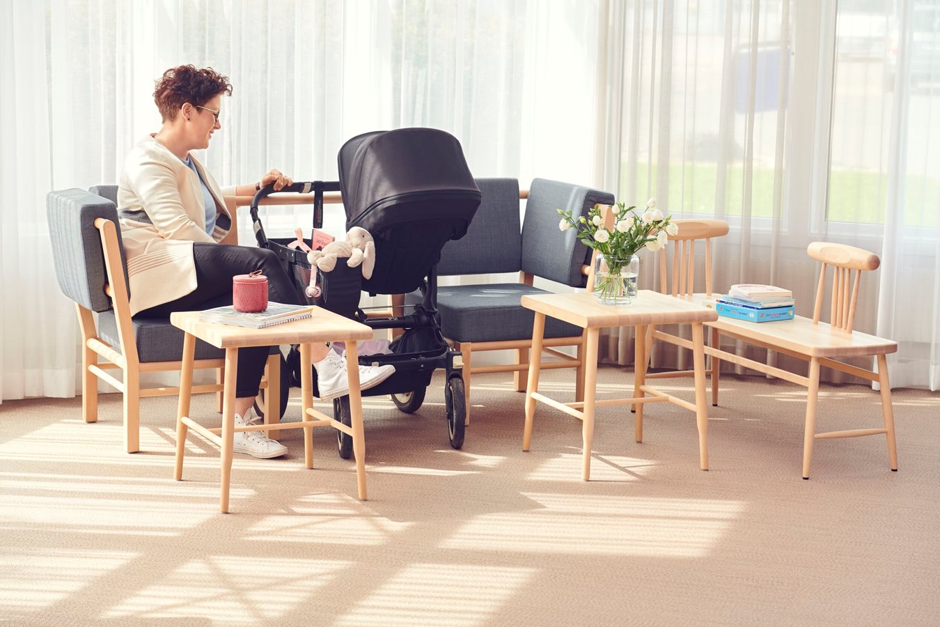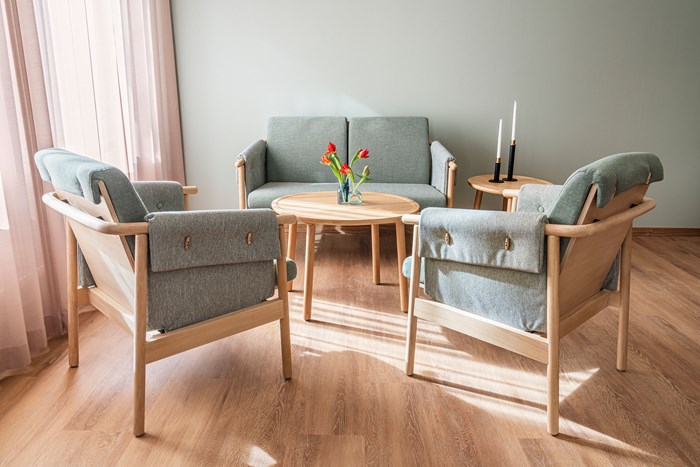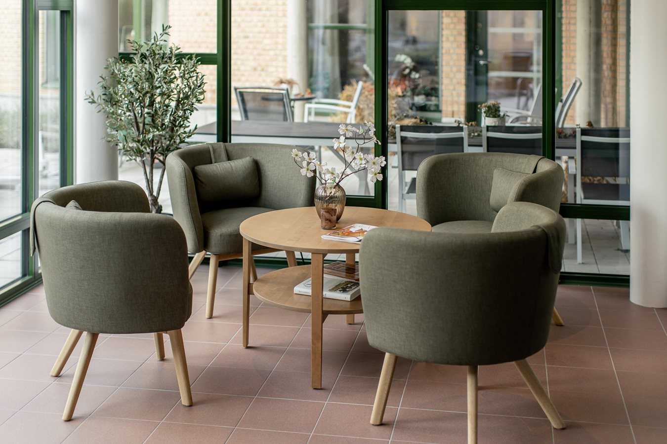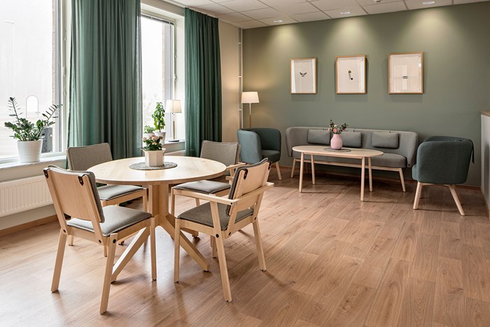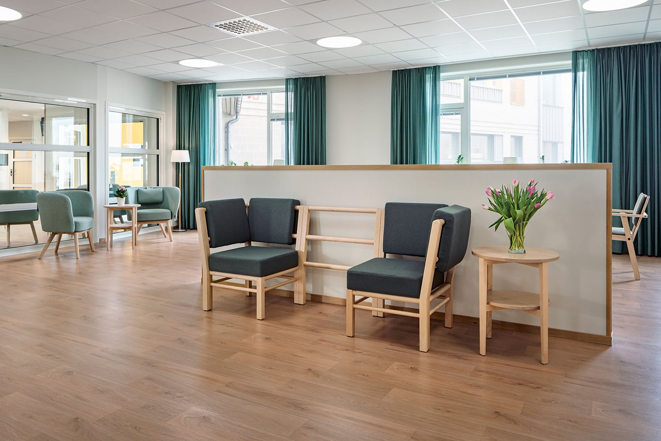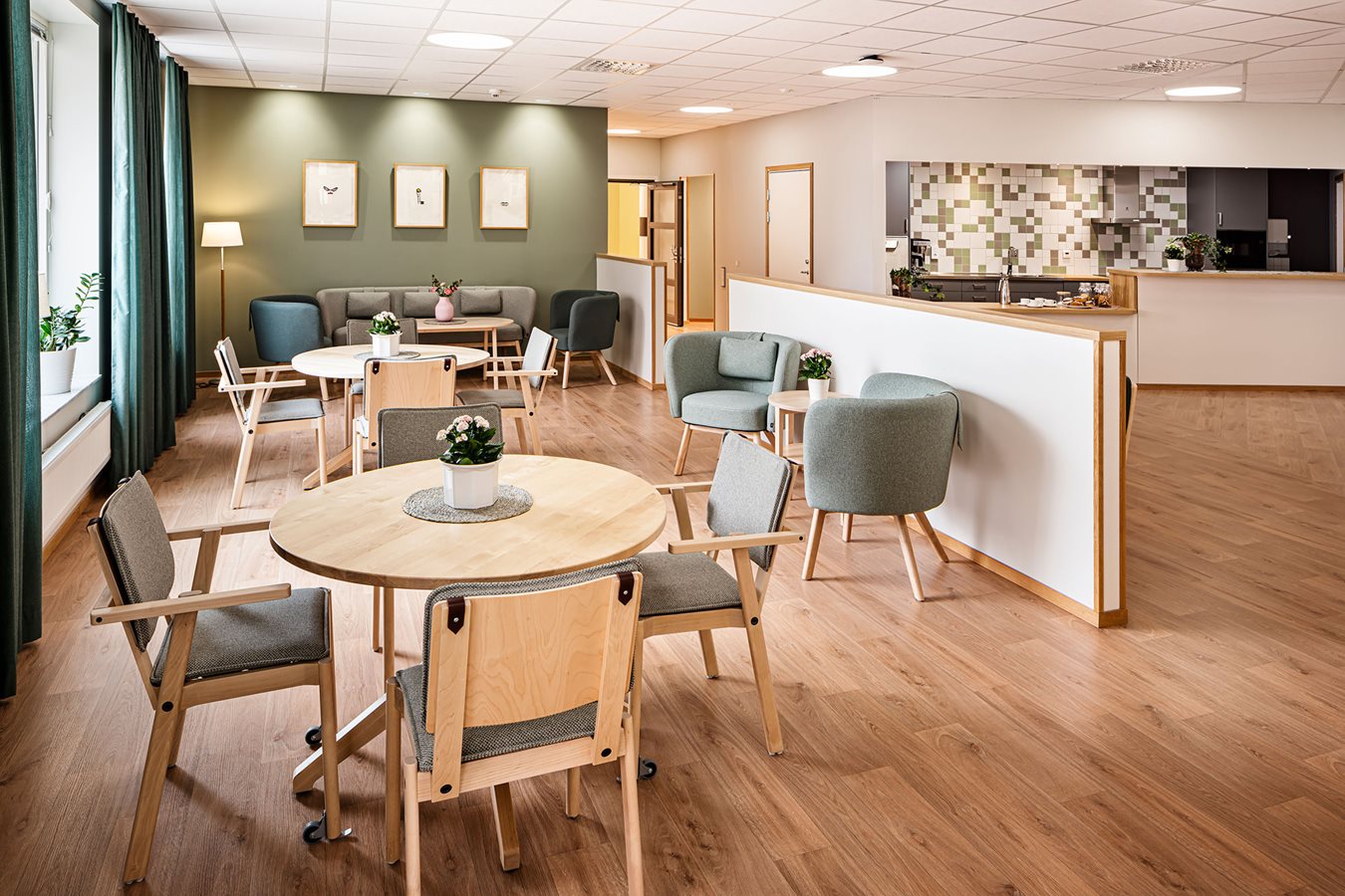 The lounge or waiting area is a space where relatives, care recipients and staff can sit while waiting for an activity, or just sit down and socialise. In this important space, the interior design creates a homely, non-institutional feel, which makes people feel comfortable and secure. It’s a good idea to supplement the space with positive distractions that can shift thoughts away from negative impressions, for example through smell, visual impressions or sound.