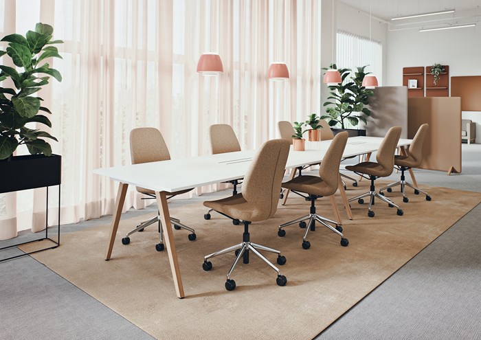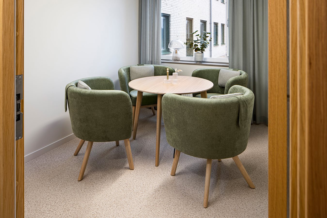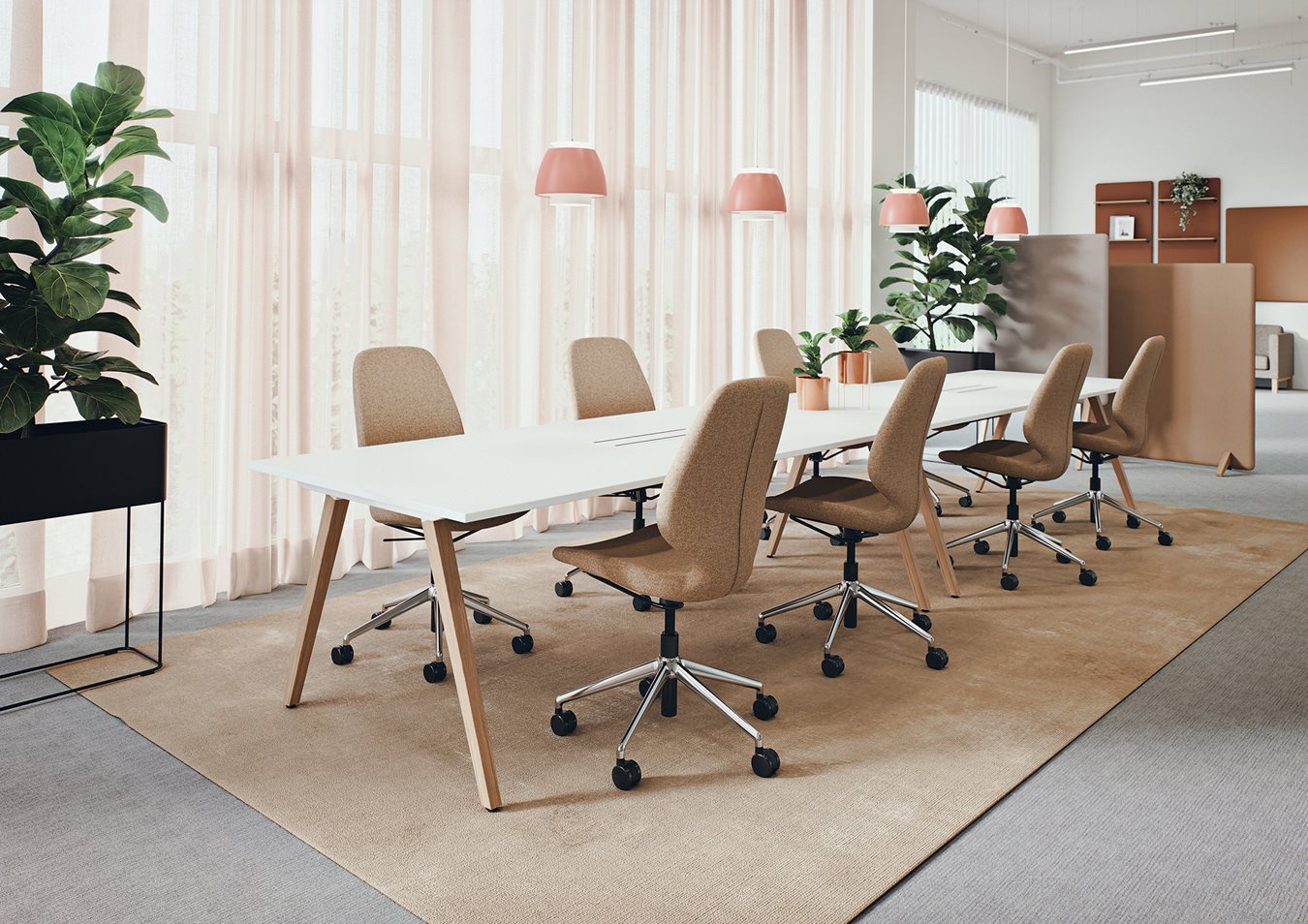 The meeting space is an area for planned and spontaneous staff meetings. It can be part of an open space, or it can be enclosed to allow undisturbed conversations. Smart technological solutions also make the space ideal for presentations and video conferencing.