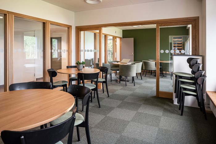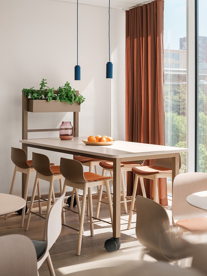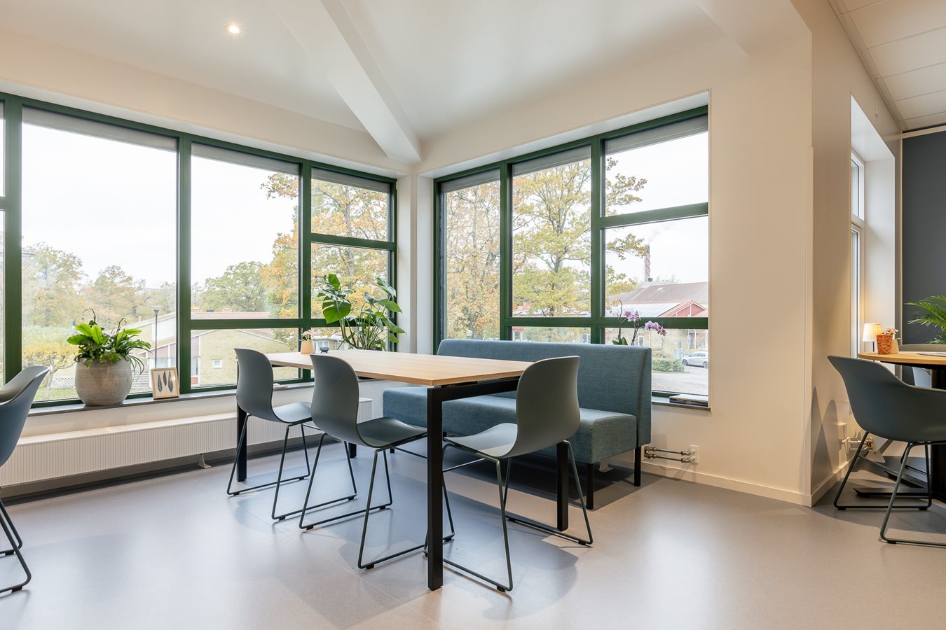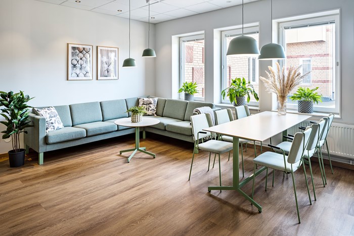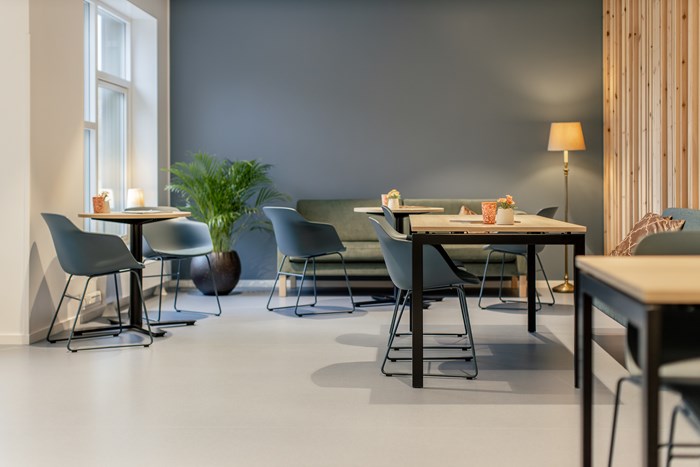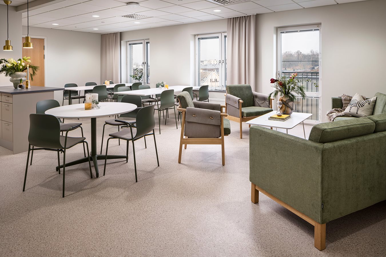 Eating lunch in the dining area should feel pleasant, but it’s also important to be able to get the recovery you need. A varied interior design that offers both basic and more comfortable seating options creates the right conditions.