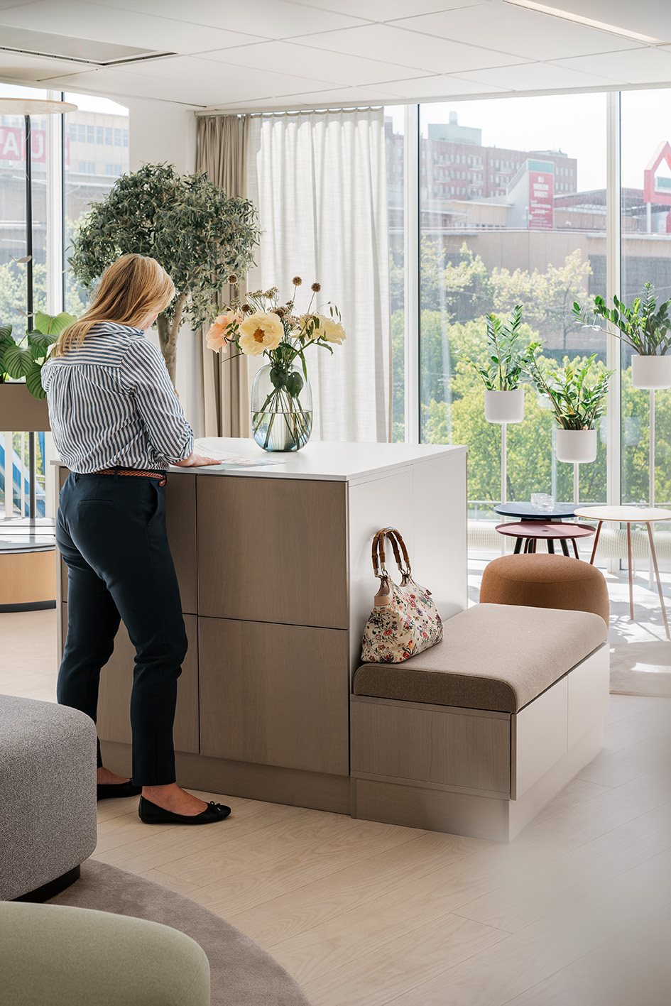 Priestor, ktorý sa otvára pre sociálnu interakciu, konverzáciu a nové nápady, napríklad pred alebo po formálnejšom stretnutí. Priestor môže pozostávať z voľne stojacich stolov mimo konferenčných miestností alebo v polootvorenom prostredí, rozdelenom paravánmi, textíliami alebo nábytkom s vysokým operadlom.