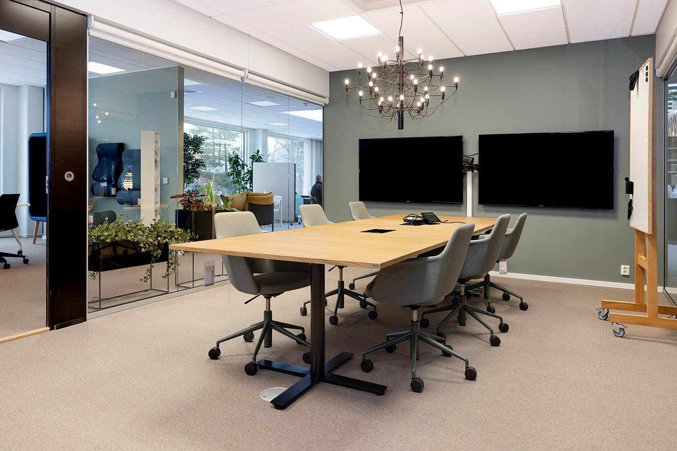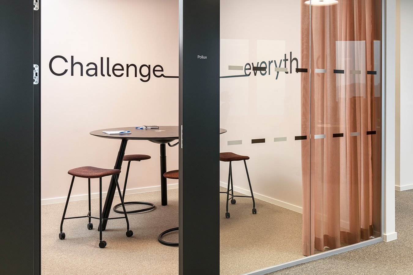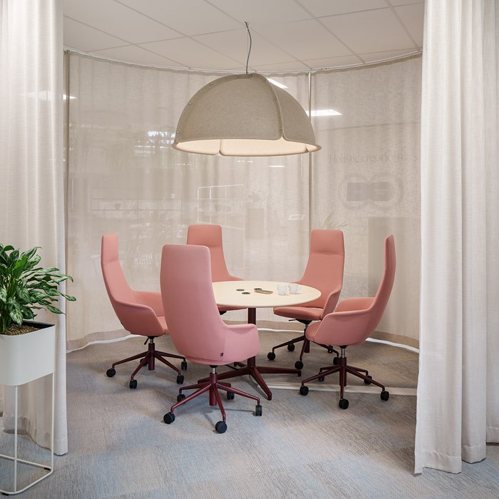 V tomto priestore môžu prebiehať plánované aj spontánne stretnutia pre 7 až 10 osôb. Priestor môže byť otvorený alebo uzavretý pre nerušené rozhovory. Vďaka technológiám je priestor ideálny aj na prezentácie a videokonferencie. Rozhodnite sa či má byť tento priestor súčasťou rezervačného systému.
