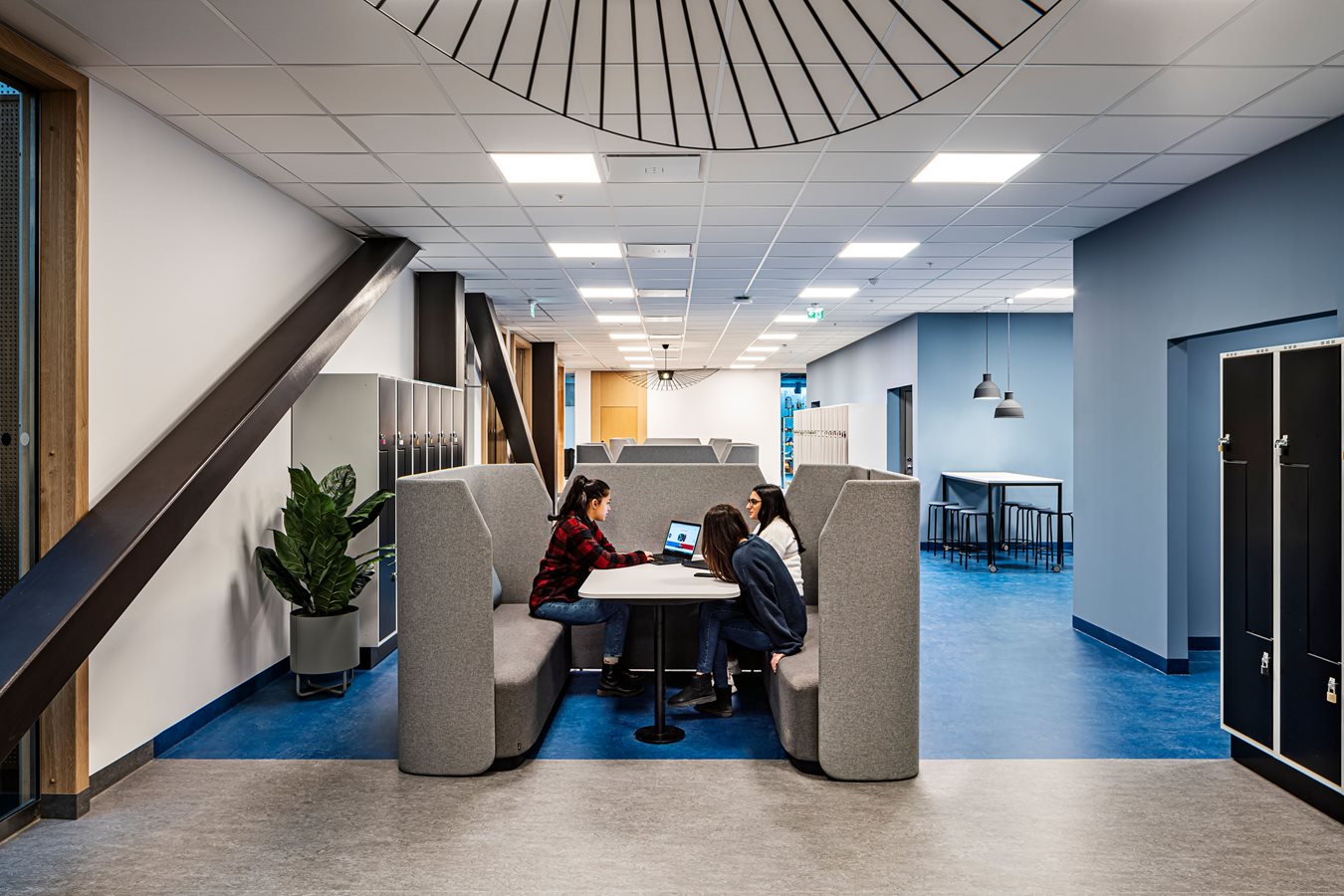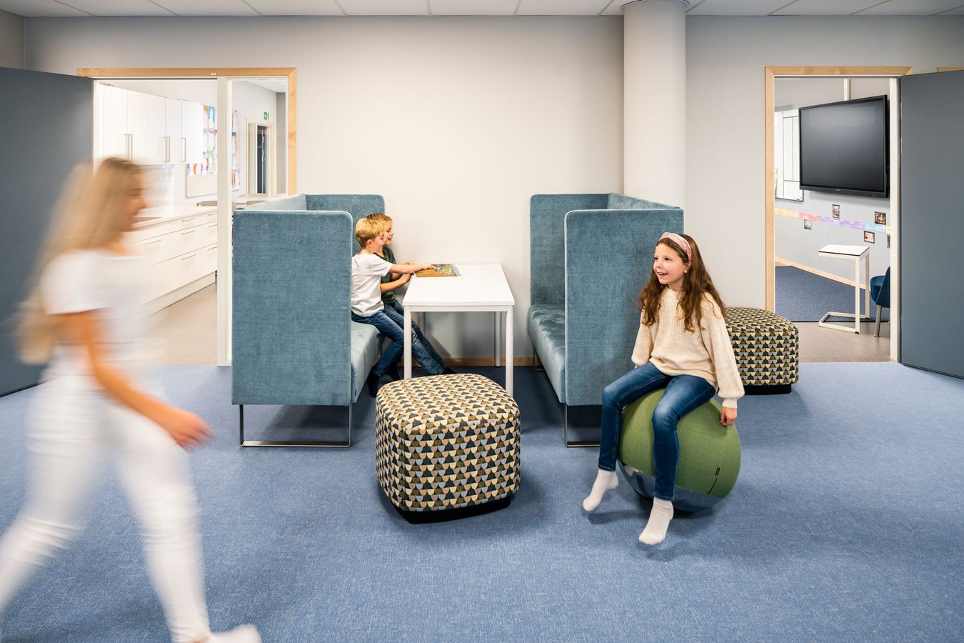 Chodby so zariaďovateľnými oblasťami možno ľahko integrovať so zvyškom školy ako prirodzené vzdelávacie prostredie. Dodatočné priestory pre štúdium, prestávky a spoluprácu podporujú učenie a spĺňajú potreby rôznych študentov. Stohovateľné stoličky, ktoré sa dajú ľahko umiestniť do priestoru, keď potrebujete ďalšie miesta na sedenie, projektové stoly a tabule na písanie na kolieskach, ktoré možno presúvať tam, kde sú momentálne potrebné – alebo úložné jednotky sú príkladmi multifunkčných produktov. Dajú sa ideálne využiť ako miesta na sedenie v inteligentných a flexibilných riešeniach pre chodby spolu s podpornou technikou.