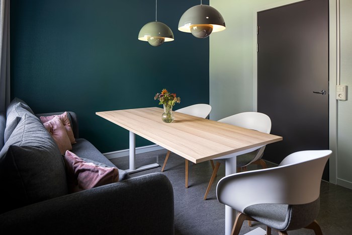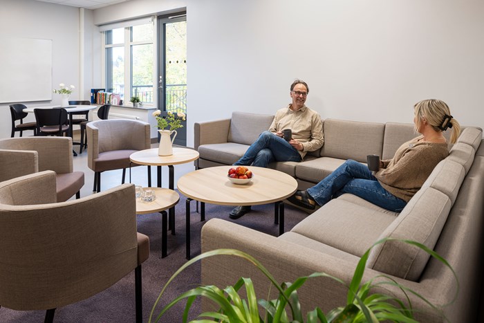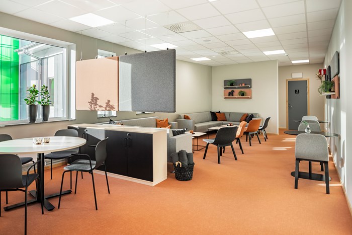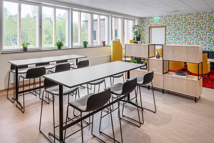 A relaxed area that is dedicated to staff. It is an important space where you can recover, socialize and meet in an informal environment. You can eat your lunch here, have a coffee with your colleagues or hold meetings – both planned and spontaneous. The staff lounge is a perfect complement to the other spaces in the school. The interior design invites you to relax, while also serving as a temporary workplace.