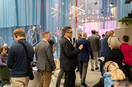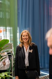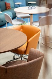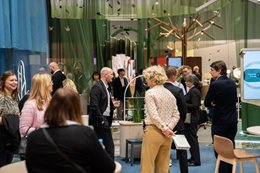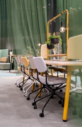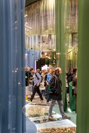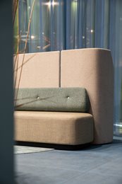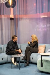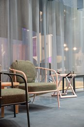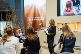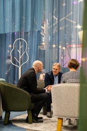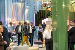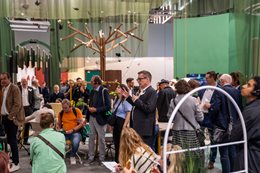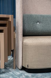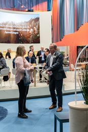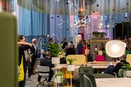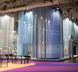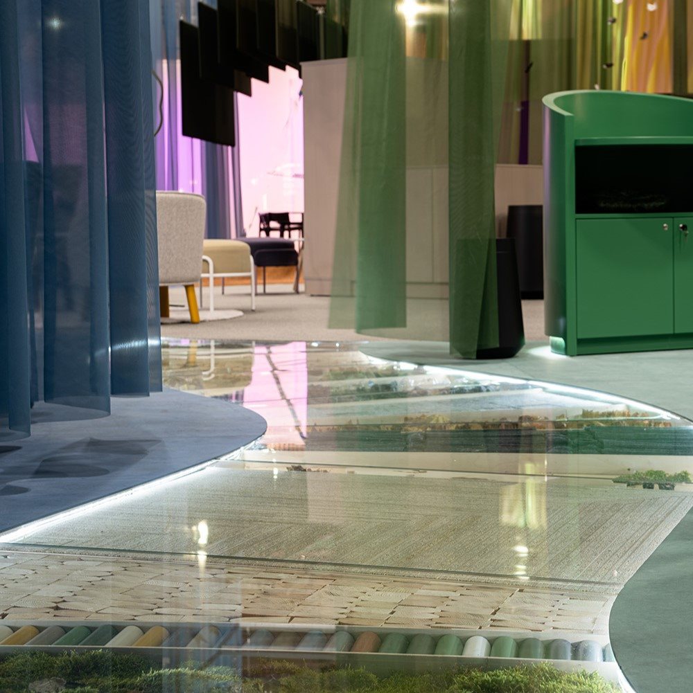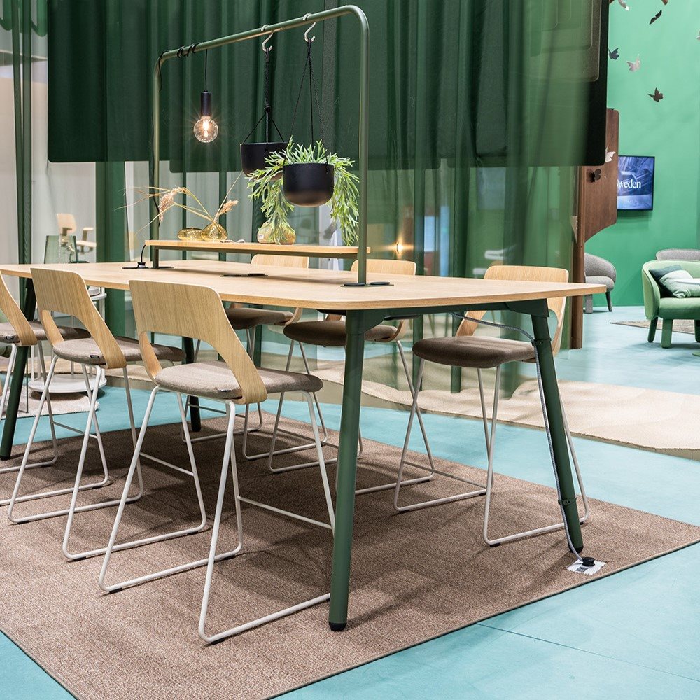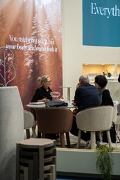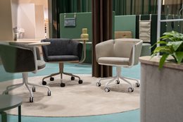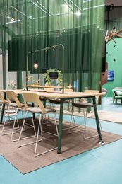 The trade fair stand, inspired by Swedish nature, has the motto “Everything's connected” and makes it clear that ergonomics in the office is characterised by the entire physical and social environment and is not just defined by individual pieces of furniture.