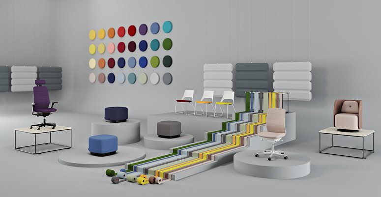 Kinnarps Colour Studio ponúka stovky materiálov a farieb pre nekonečné možnosti vytvorenia kreatívneho, atraktívneho a udržateľného prostredia. Kolekcia je aktualizovaná každý rok.