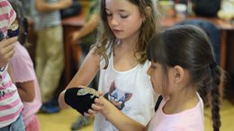 Zoznámenie so živým zvieraťom na vlastnej koži - deti mali možnosť zoznámiť sa so slimákom africkým (Achatina fulica) a dozvedieť sa tak niečo o mäkkýšoch.