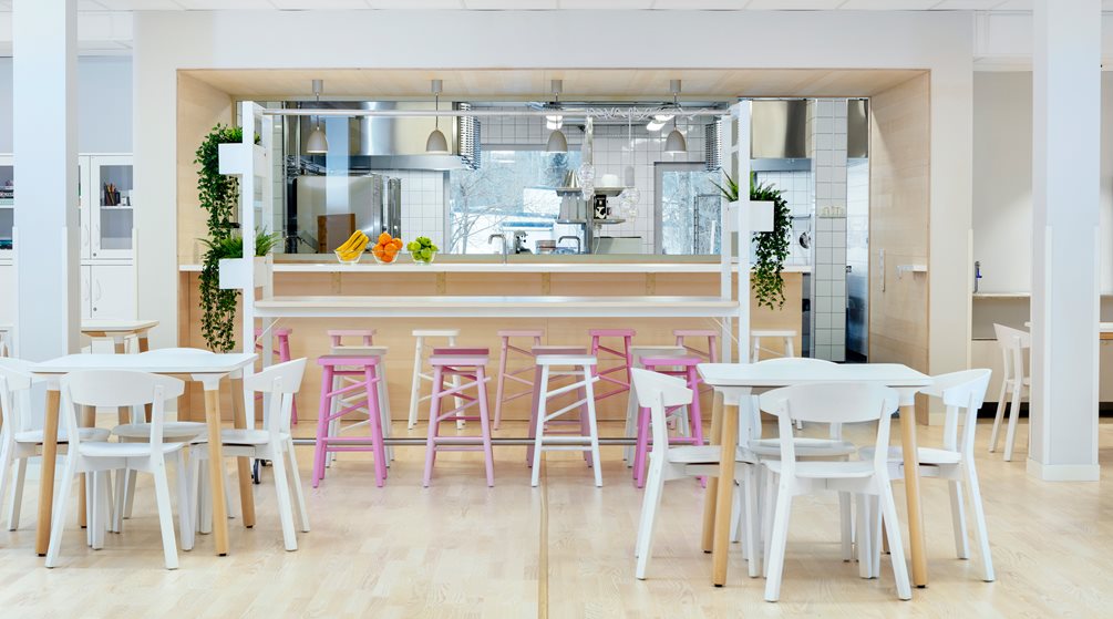 Všetok nábytok sa vyberá starostlivo a so zameraním na materiály najvyššej kvality, a to podľa zásady, že dobre premyslené fyzické prostredie môže mať pozitívny vplyv na učenie. Nábytok a materiály, ktoré predstavujú prostredie, ktoré je dôležité a hodnotné. Prečo v školskej reštaurácii nemať dubové dyhy morené nabielo?