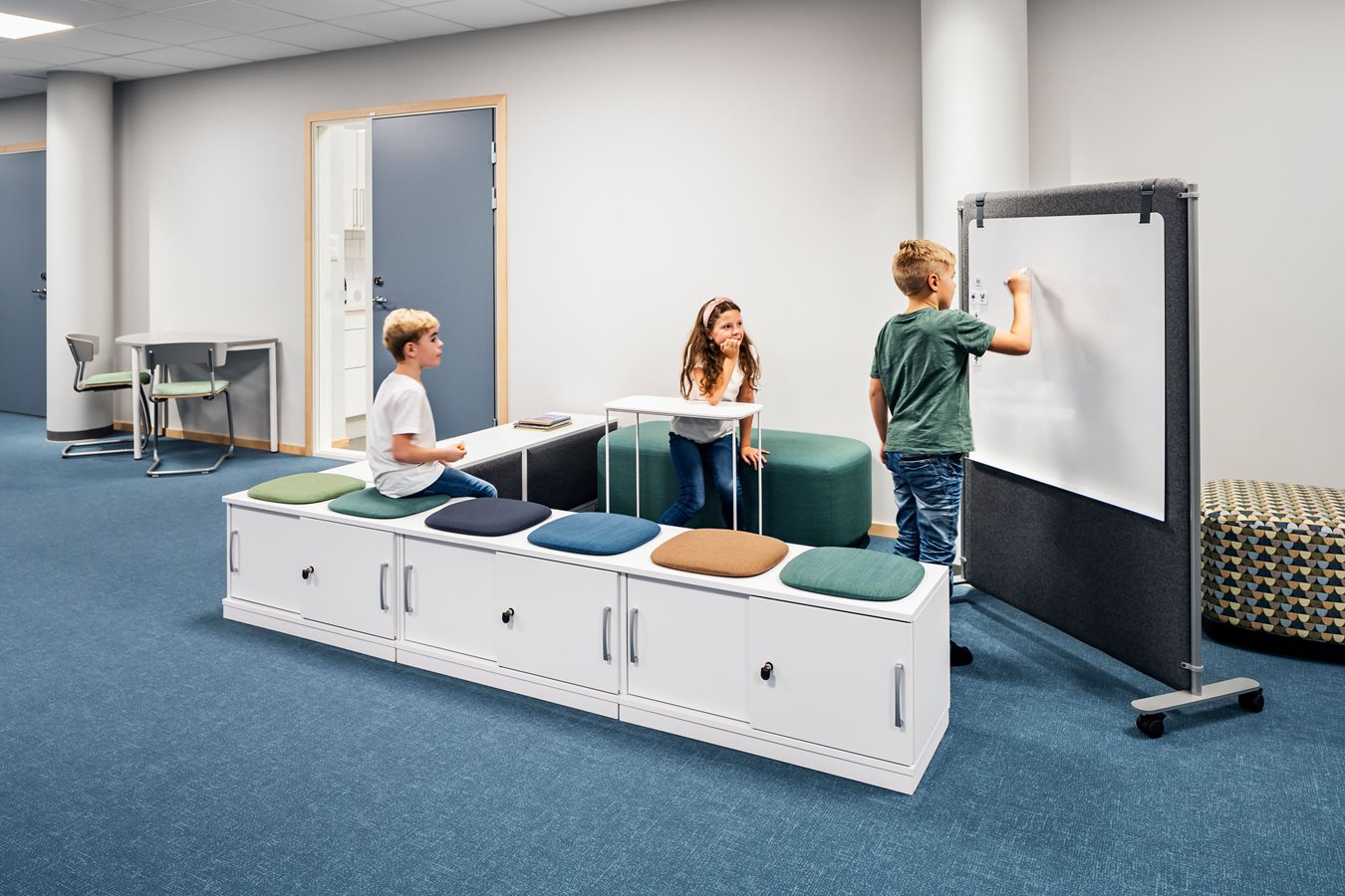 Dnešné deti sa učia a objavujú novými spôsobmi. Flexibilné riešenia interiéru škôl vďaka prispôsobiteľným produktom prinášajú možnosť kombinovať rôzne kusy nábytku a zároveň usporiadať nábytok tak, aby vyhovovali konkrétnemu žiakovi a vykonávanej úlohe počas vyučovania. Správnym rozmiestnením interiérových prvkov zároveň podporíte produktivitu a vzájomnú spoluprácu žiakov.