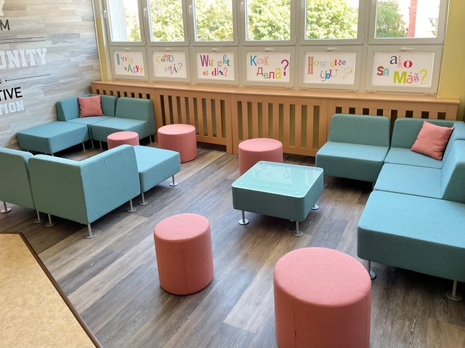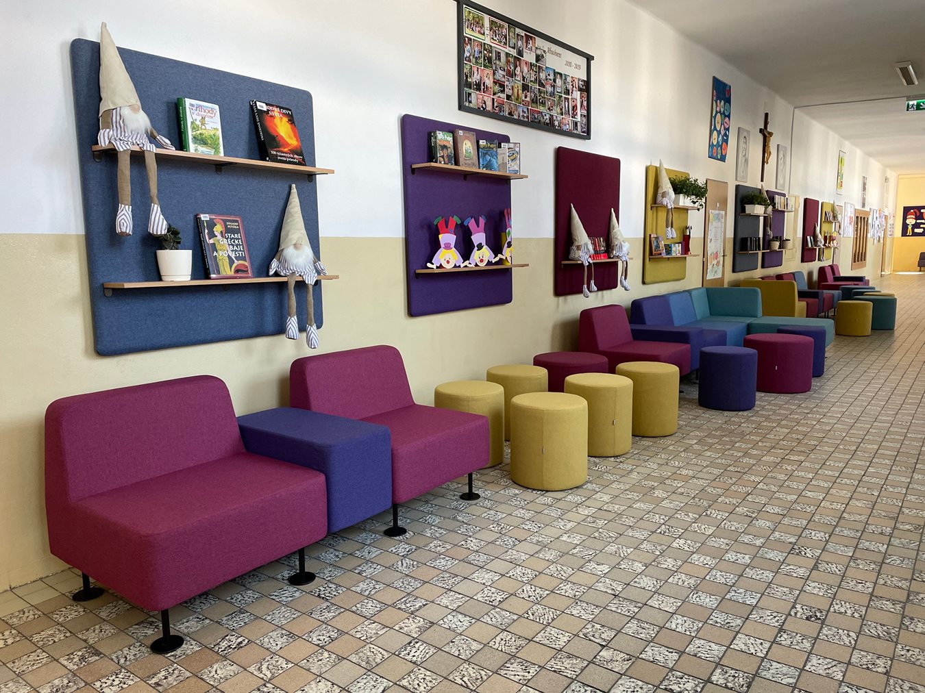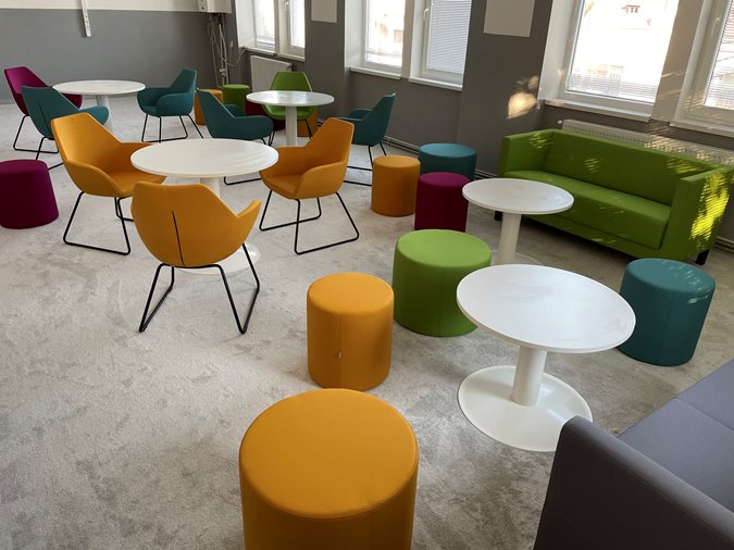 Nábytok nám bol dodaný v čase, keď sa v spoločnosti začali uvoľňovať Covid opatrenia a zrušil sa zákaz zmiešavania žiakov z rôznych tried a tiež sa nám, po nekonečnom období pandémie a dištančného vzdelávania, vrátili do lavíc všetci žiaci. Nové oddychové zóny pomohli socializovať našich žiakov, prekonať strach a odstup, ktorý spôsobila pandémia. Od momentu nainštalovania toto sedenie ešte nebolo prázdne.