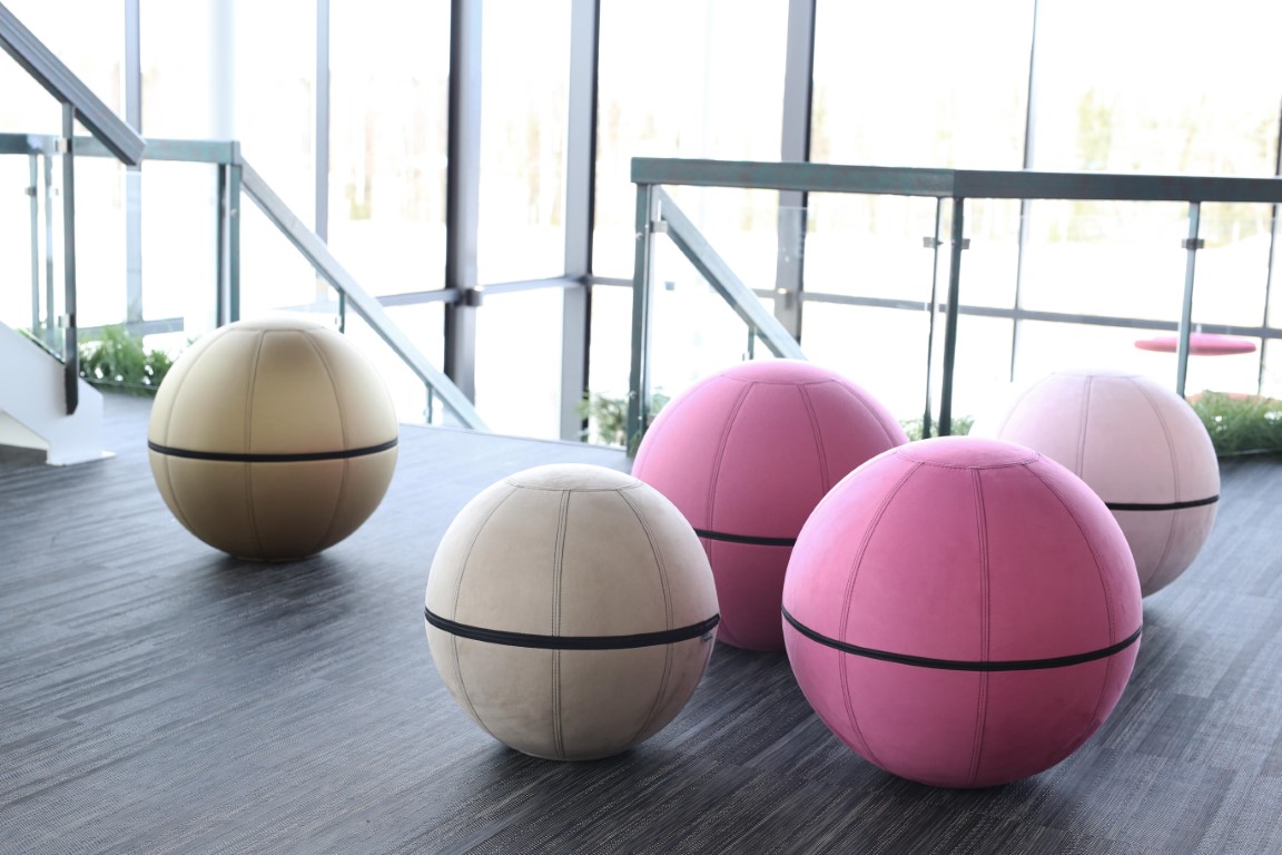 Je očalunená fit lopta, ktorá slúži na krátkodobé sedenie.