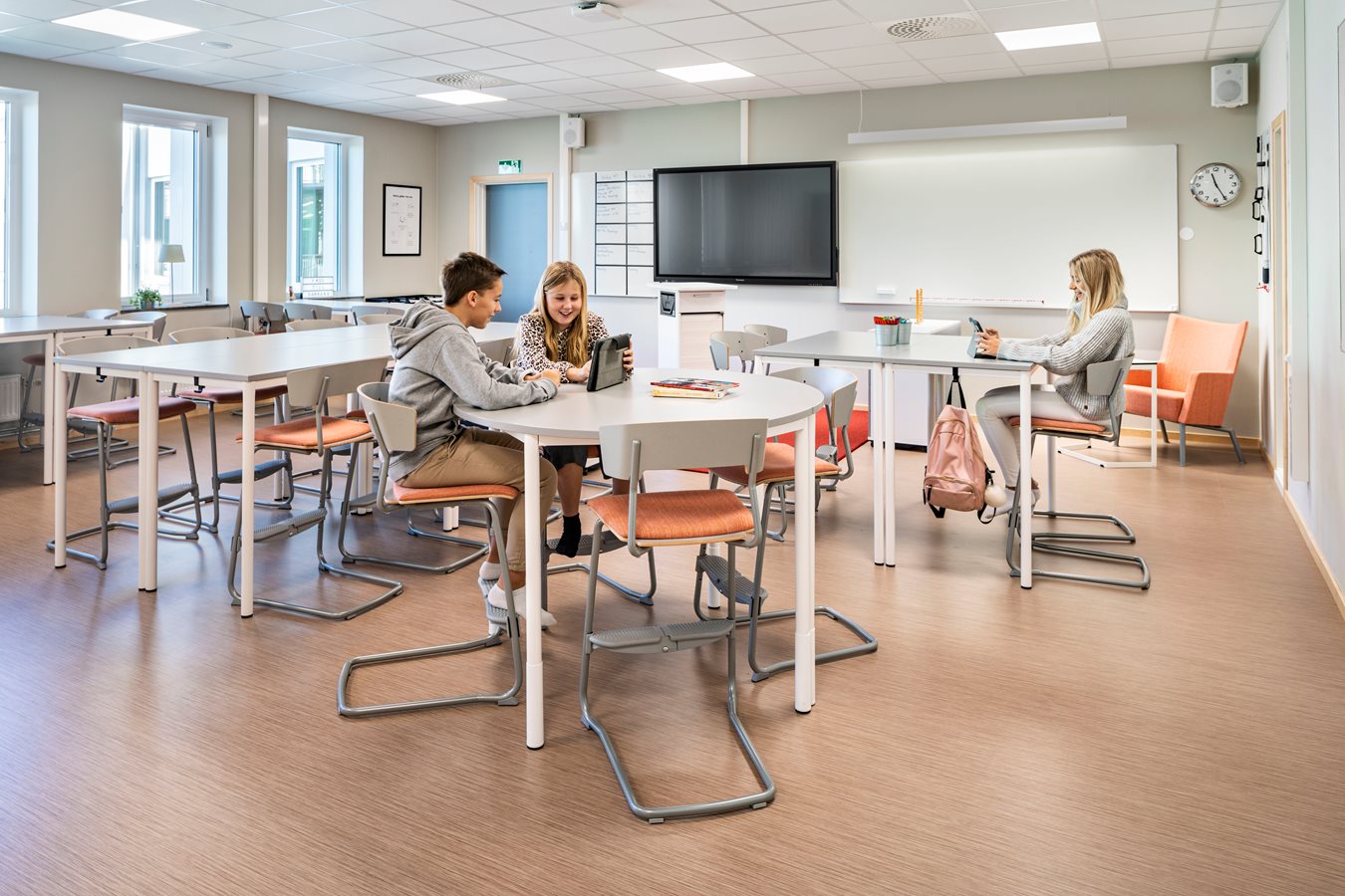 V prvej fáze projektu Kinnarps, ako dodávateľ interiérového zariadenia, vytvoril oddychové zóny na chodbách. Zvolené farby podporili už aj tak príjemne presvetlené chodby. Cieľom druhej fázy bolo vytvorenie priestoru pre deti s dôrazom na ich interakciu počas vyučovania, aj počas záujmových krúžkov.