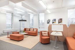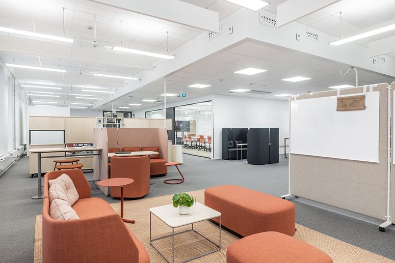 Všestranný nábytok je založený na rozmanitosti typov sedenia a mobilných popisovateľných plôch, ktoré slúžia aj ako deliace a akustické prvky, ako sú napríklad pohovky Fields s vysokým operadlom a paravány Vibe. Priestory na spoluprácu sú vhodné pre individuálnu aj tímovú prácu a môžu poskytnúť priestor pre viacero skupín súčasne.