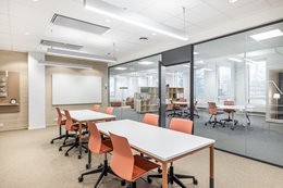 Na prvom poschodí sa nachádza viacero rôznych rokovacích miestností a lounge priestorov. Osobitná pozornosť bola venovaná používateľom a ich zážitku ešte počas fázy navrhovania, aby sa zabezpečila jednoduchosť, funkčnosť a príjemný pocit z používania.