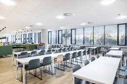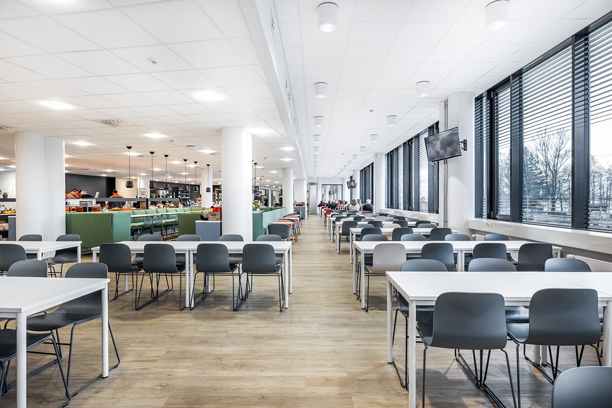 Denne slúži zamestnancom kancelárie aj výrobným pracovníkom veľký jedálenský kút. Môžete si vybrať sedenie pri tradičnom jedálenskom stole alebo napríklad na polovysokej pohovke či barovej stoličke. Mimo obeda slúži veľký lounge aj ako miesto pre stretnutia.