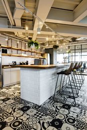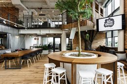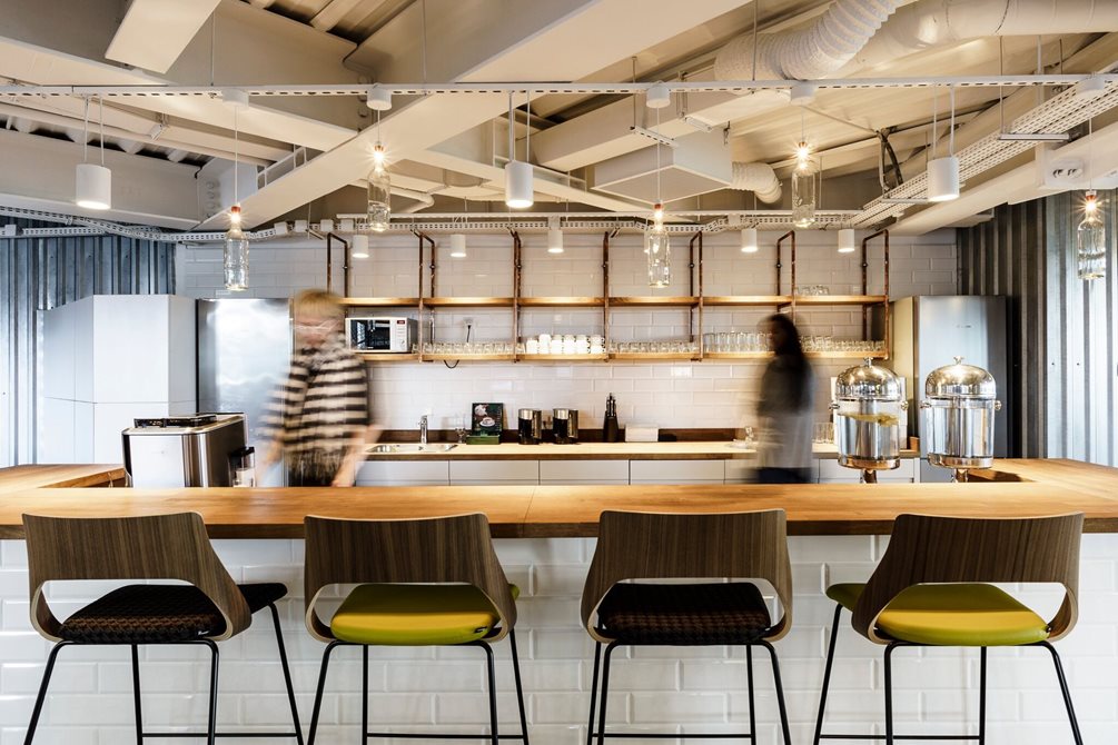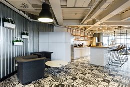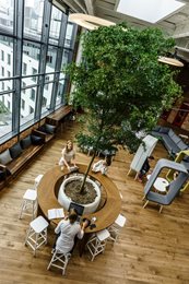 Centrálna časť kancelárskeho priestoru pripomína lounge alebo námestie, záleží na pocitoch užívateľa.