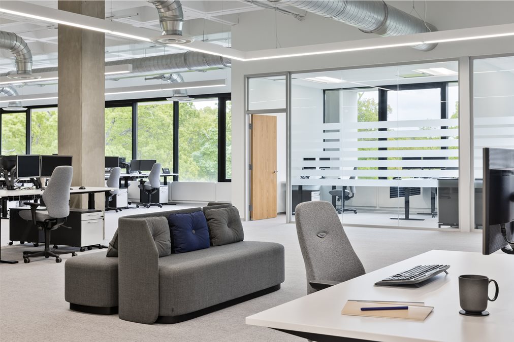 415 kancelárskych stolov zo série P dostalo nové pracovné dosky, ktoré zmenili farbu buku na modernejší biely laminát. 248 kancelárskych stoličiek Plus sú vybavené novými sedadlami a operadlami, ktoré im dodali vzhľad úplne novej stoličky, farebne zladenej so zvyškom novej kancelárie.