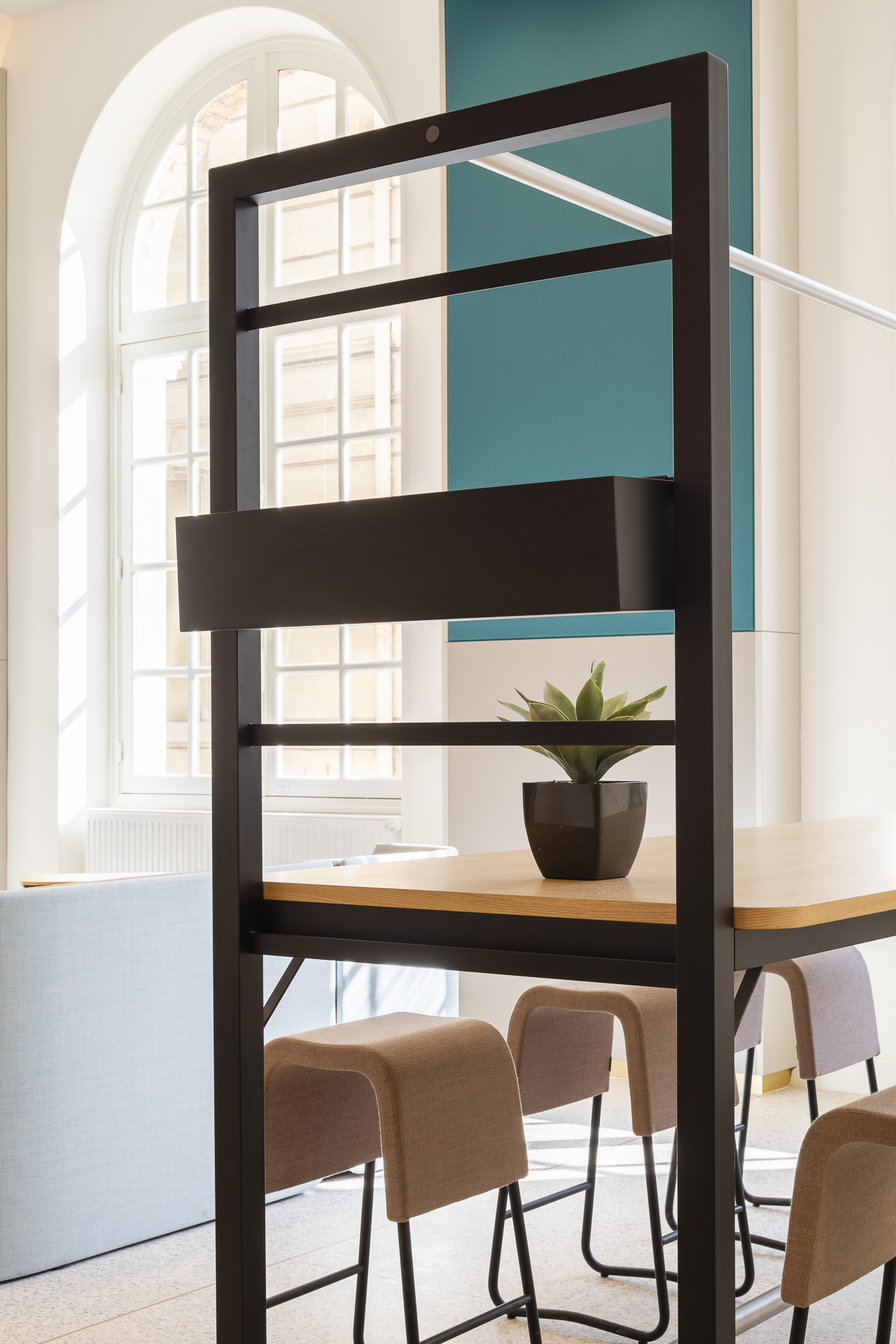Pracoviská v zdieľanom priestore využívajú mnohí ľudia, preto bolo potrebné použiť multifunkčný nábytok. Niektorý je určený na dlhodobú prácu vyžadujúcu koncentráciu, iný zas na krátke úlohy, napríklad projektovú prácu. Zastávame názor, že používanie stoličiek by malo byť intuitívne a rôzne typy priestorov je potrebné prispôsobiť rôznym spôsobom vykonávania práce.