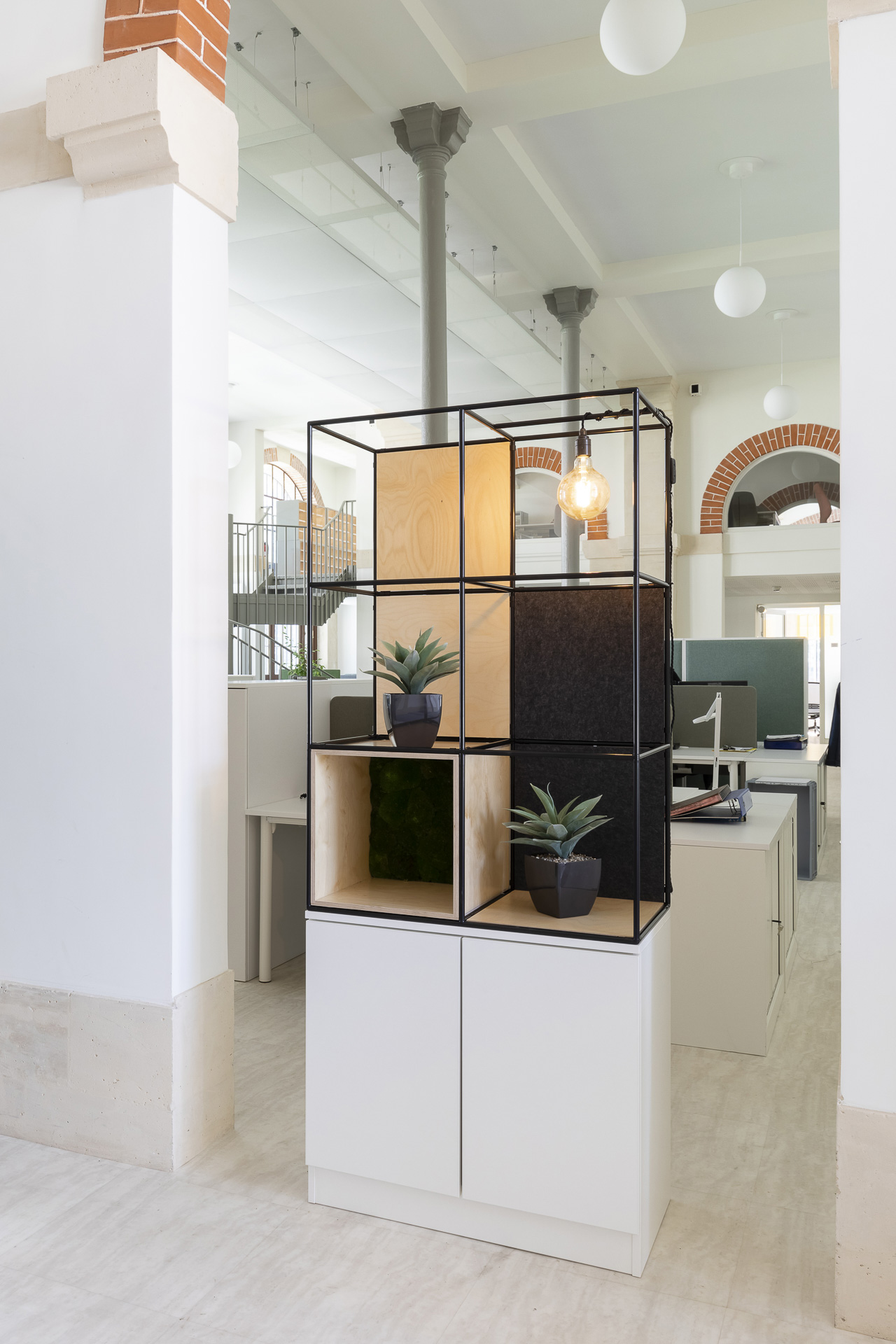 Priestory určené na prácu sú zariadené nábytkom, ktorý ponúka rozličné funkcie. Niektorý je určený na prácu, ktorá vyžaduje koncentráciu, zatiaľ čo iný na krátkodobé stretnutia alebo prácu na projektoch.