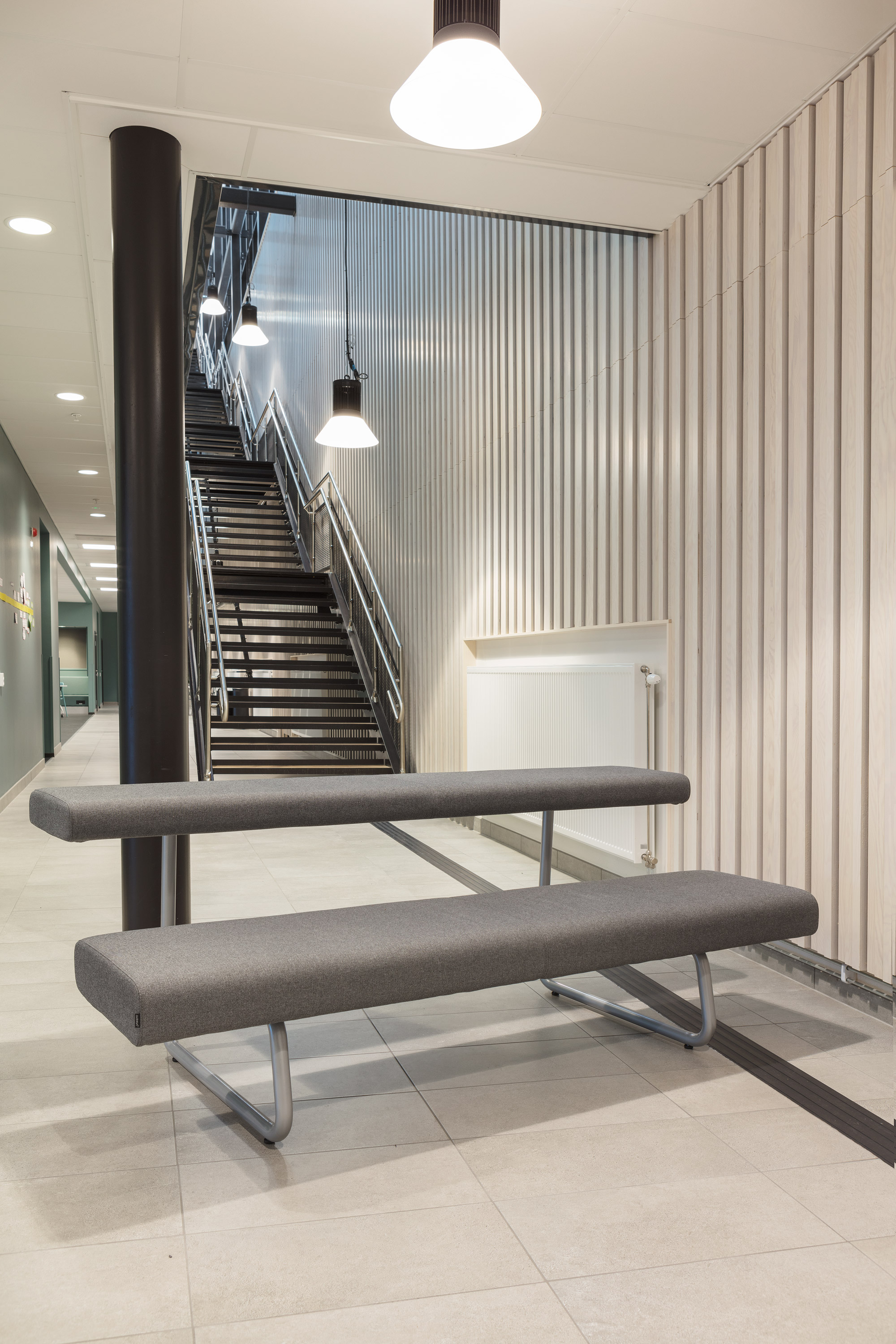 Gymnázium Växjö Fria si vybralo do chodieb a spoločných priestorov čalúnený nábytok, čiastočne aby im dodal domácky pocit, ale aj preto, že škola cítila, že žiaci boli dosť vyspelí na to, aby ho mali. Úzkou spoluprácou a vzájomným načúvaním sa nám spoločne podarilo vytvoriť pekné a zároveň aj bezpečné prostredie pre žiakov Växjö.