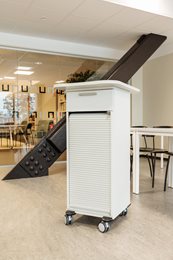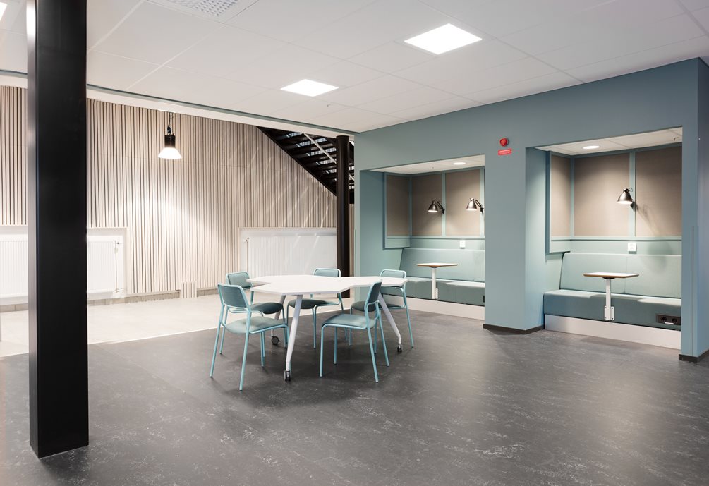 Keď sa v školách staré stolové počítače vymenili za prenosné počítače, muselo sa zmeniť aj pracovné prostredie školy. Keďže na prácu bolo potrebných menej miestností, ako aj menej počítačových miestností, chcela škola namiesto toho investovať do rôznorodého pracovného prostredia, v ktorom si môžu žiaci vybrať, ako a kde sedia. V nových priestoroch má škola možnosť vytvoriť podmienky pre kreatívnejší a flexibilnejší spôsob práce, ktorý vyzýva a motivuje žiakov. S otvoreným riešením na štyroch poschodiach, ktoré sú prepojené veľkým schodiskom, sme spolu vytvorili rozmanité pracovné prostredie, o ktoré sa škola usilovala.