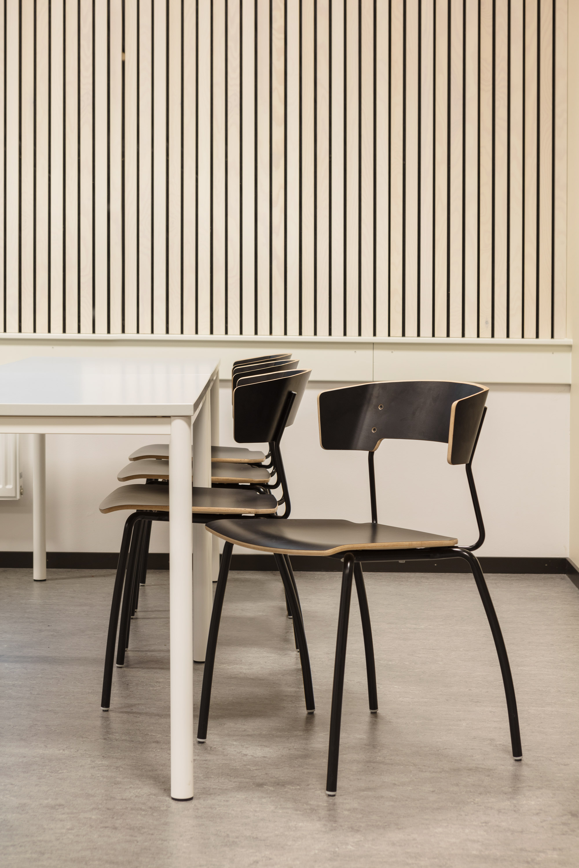 Växjö Fria Gymnasium používa veľa rôznych verzií stoličky Frisbee - vrátane nízkej a vysokej, tyrkysovej a čiernej. Frisbee je jednoduchá a flexibilná stolička, ktorá je k dispozícii, vždy keď ju potrebujete. Zariadili sme laboratórny priestor stoličkami Frisbee v čiernej umelej koži, čo zjednodušuje ich utieranie. Na chodbách školy máte Frisbee na dosah vždy, keď potrebujete extra sedenie.