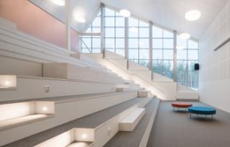 Kto povedal, že v škole by mali byť len školské lavice a školské stoly? V inovatívnom a trvalo udržateľnom vzdelávacom prostredí tejto školy majú deti možnosť spoznať "dospelácky nábytok" z portfólia Kinnarps, určeného pre kanceláriu založenú na aktivite, ako sú stoly z radu Nexus alebo úložný systém z radu Space. Kresielka a pohovky, vrátane Pio a Trix, a taburety série Fields ponúkajú nízke sedenie. Pre výučbu malých skupín alebo projektovú prácu je možné rýchlo a jednoducho usporiadať sedací nábytok okolo stola.