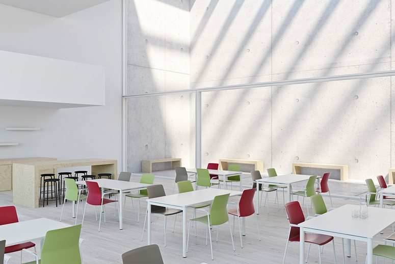 S komfortným, flexibilným nábytkom, paravánmi, pohlcovačmi zvukov a technológiami sa môže jedáleň vyznačovať viacerými funkciami, napríklad poskytovať priestor pre študijné zóny, skupinové miestnosti, prezentačné priestory alebo to, čo je najviac potrebné.